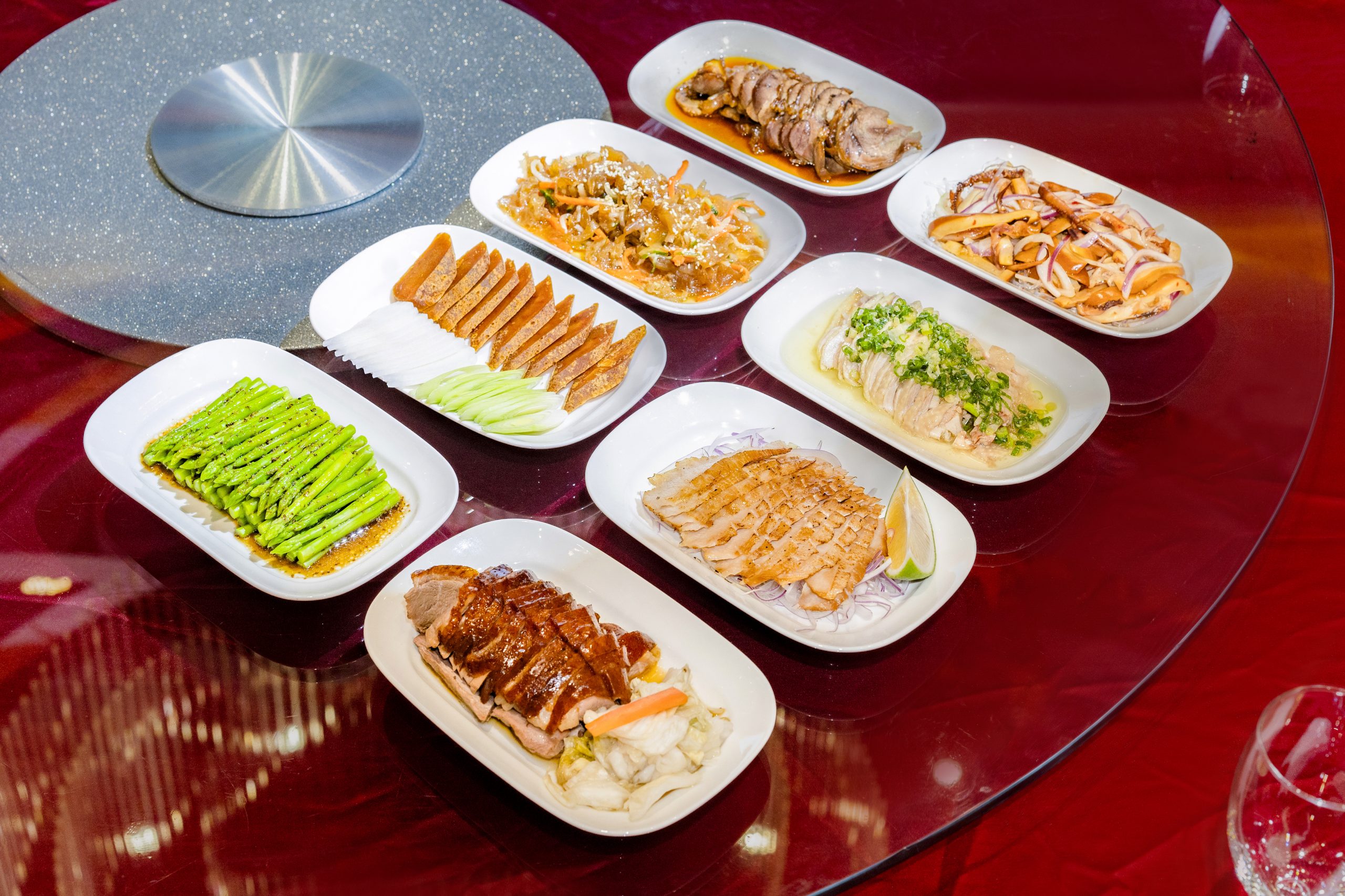 川味牛腱、檸檬松阪豬、煙燻小卷、烏魚子、烤鴨、新鮮蘆筍、水晶雞、海蜇……
