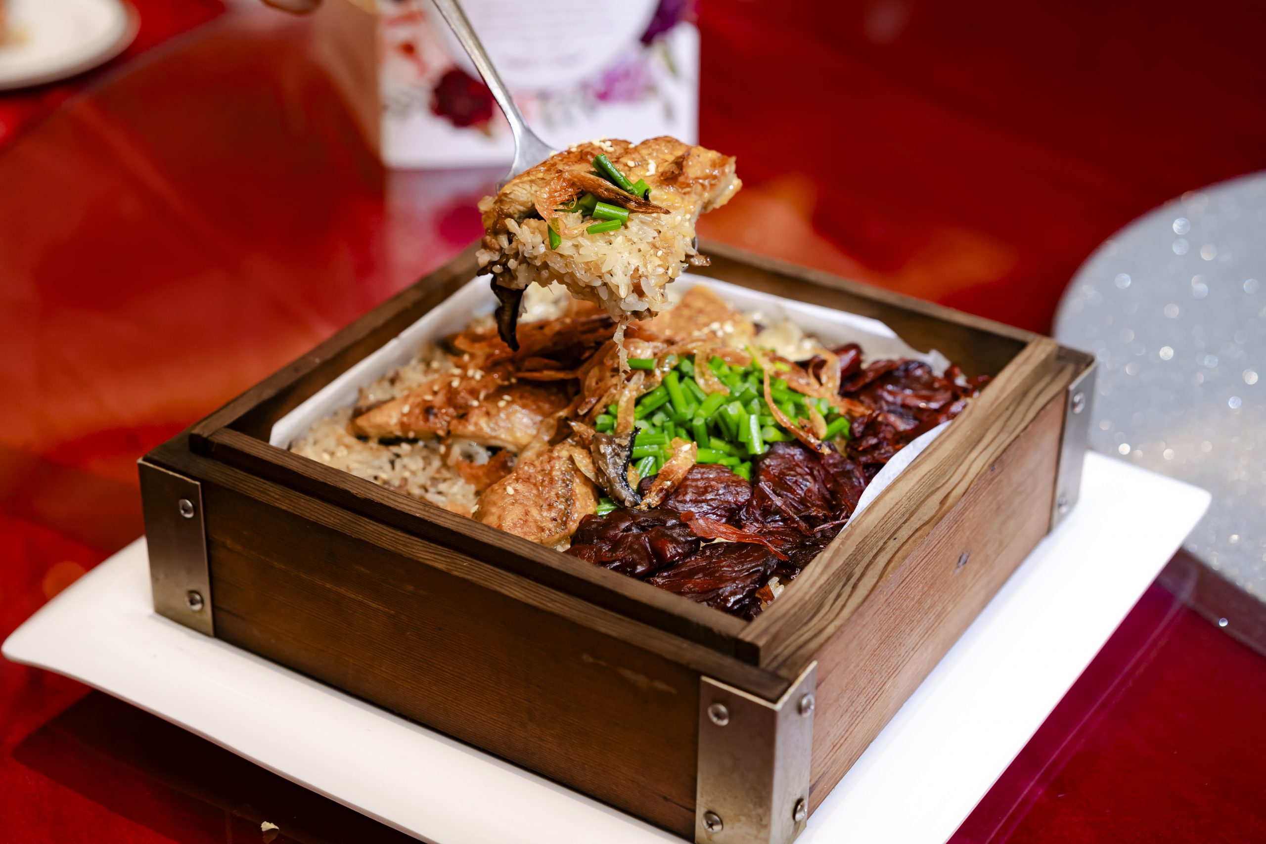 櫻蝦鰻魚珍珠糕是葳格的經典招牌菜,自己做的洛神花乾搭配炒韭菜讓米糕吃起來不油膩,
