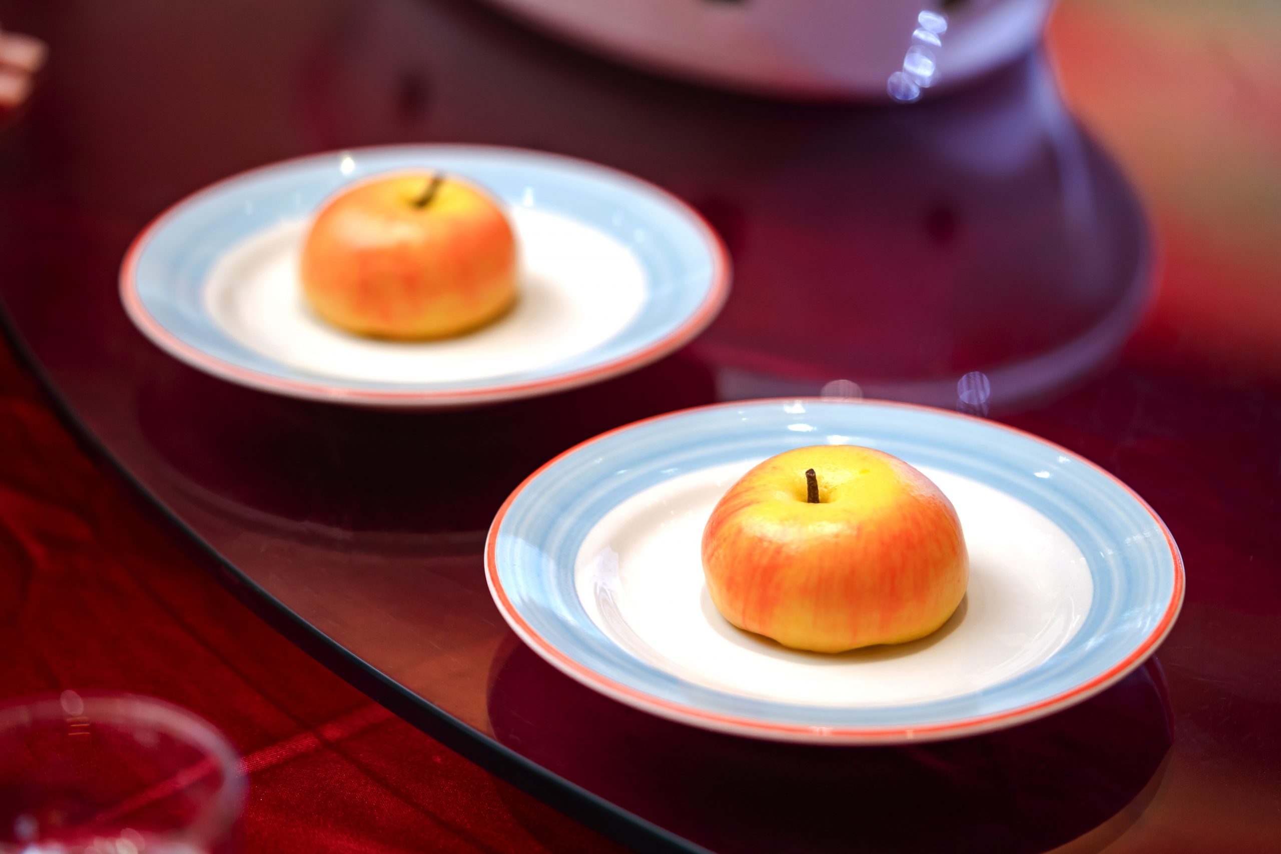 最後的甜點也用心到不行,看起來好像是一顆新鮮蘋果,但其實它是奶黃包唷!