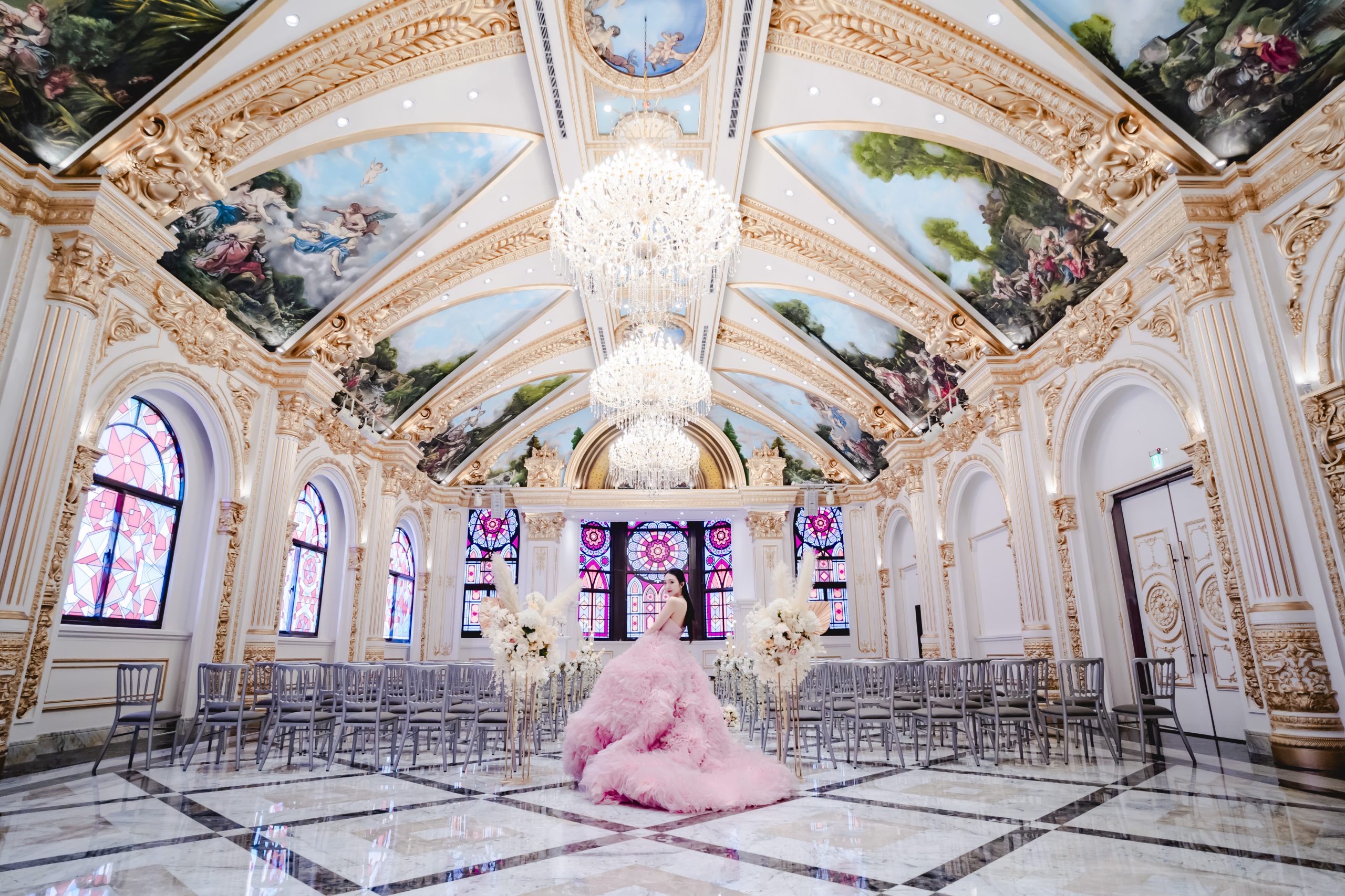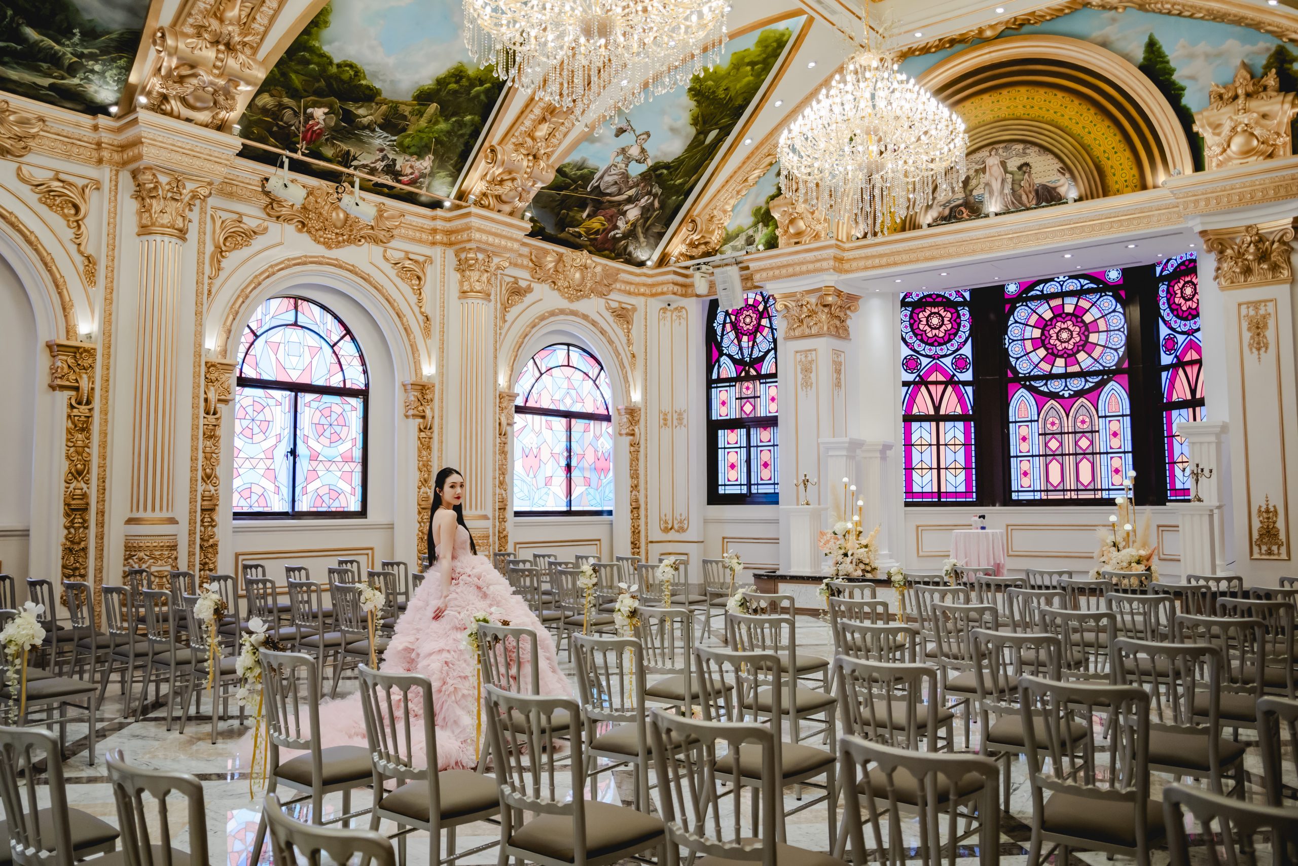 天花版挑高的設計以及水晶燈的夢幻感,整個禮堂的氛圍讓人一走進去就十分感動。