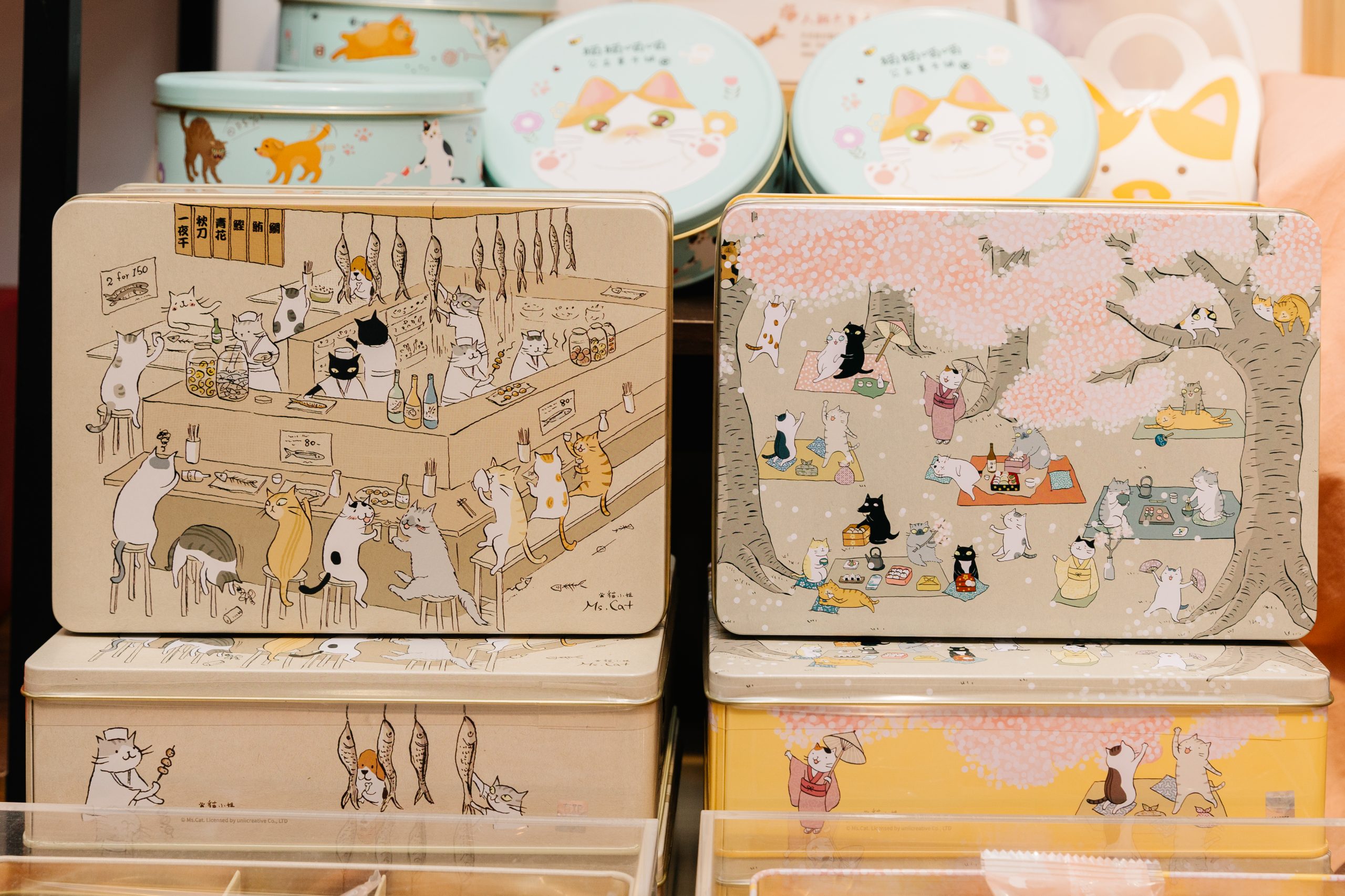 這款鐵盒超特別!很適合喜歡夜生活的我,插畫設計靈感來自夜晚的居酒屋,可以看到貓咪師傅很忙碌的接待客人,還有貓咪舉杯小酌的樣子,甚至還有喝醉的貓咪太可愛,給我一種可愛兼具神祕的感覺。