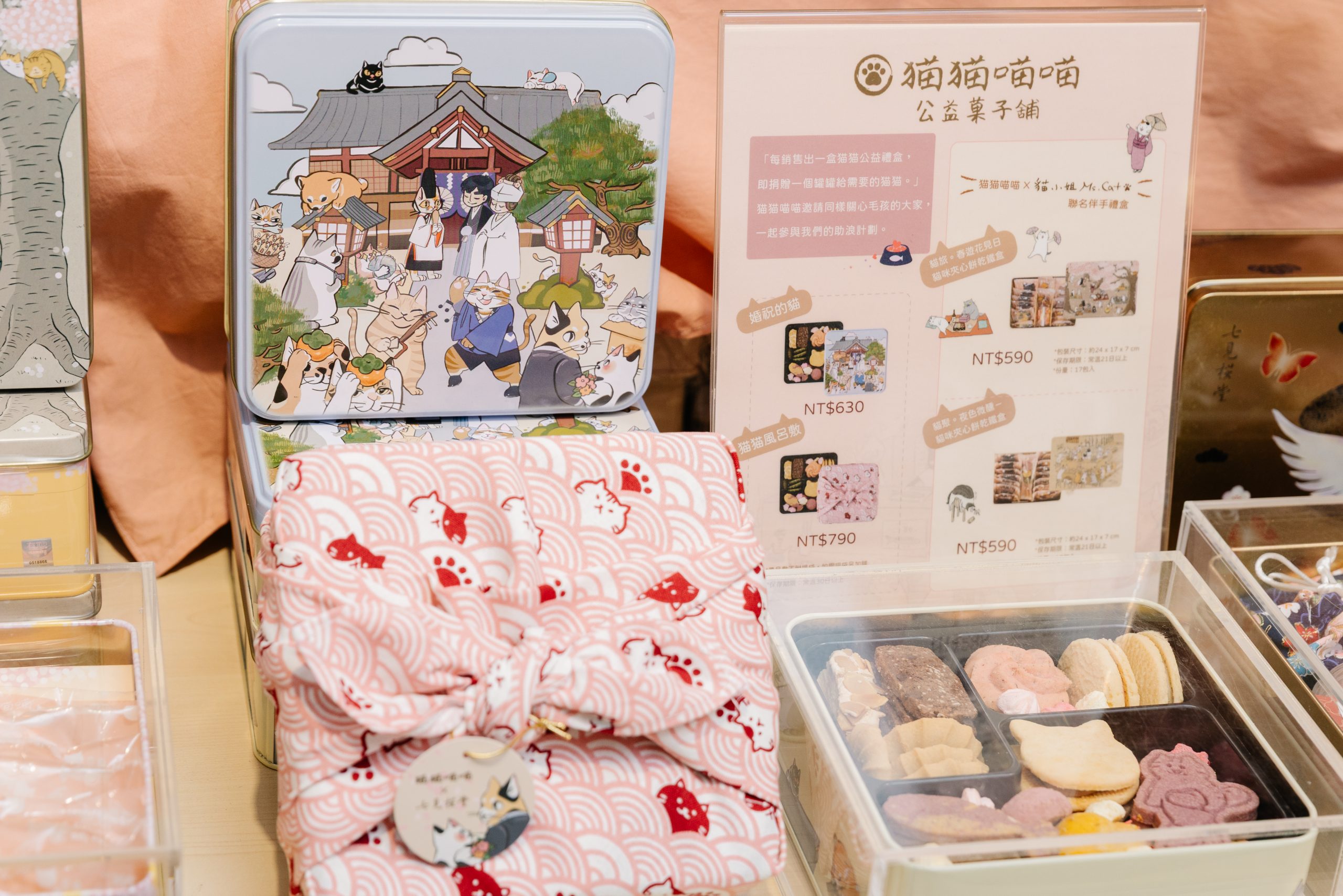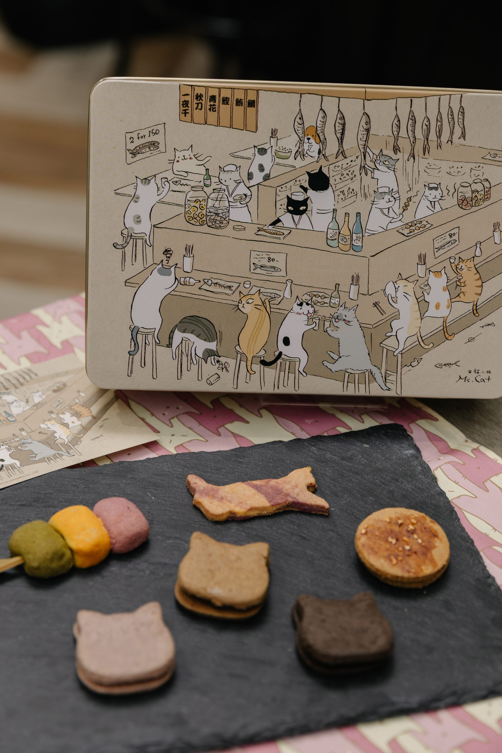 大家好!這次在東門捷運站附近師大泰順門市,體驗【猫猫喵喵】的公益喜餅禮盒,本次還有猫小姐 Ms. Cat 聯名推出的禮盒,幫助浪貓為出發點誕生「每銷售出一盒猫猫喵喵公益喜餅,即捐贈一個罐罐給需要的猫猫」。試吃過程中不只被滿滿的貓咪元素融化,連包裝都超用心——我最愛的就是用風呂敷包裝喜餅,質感滿分,這系列貓咪餅乾不只是造型可愛,還是「人貓共食」設計!收到的人一定印象深刻 💕