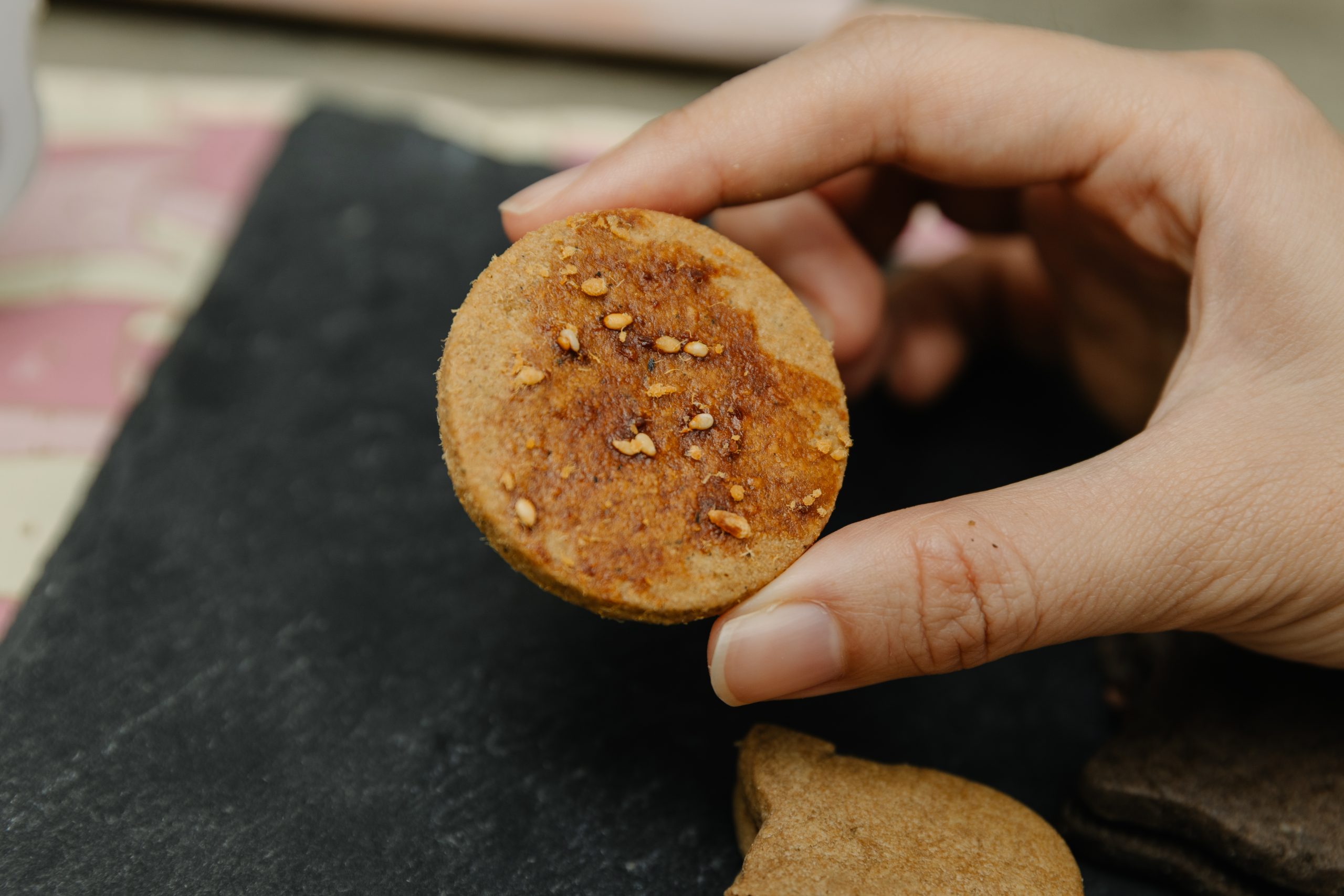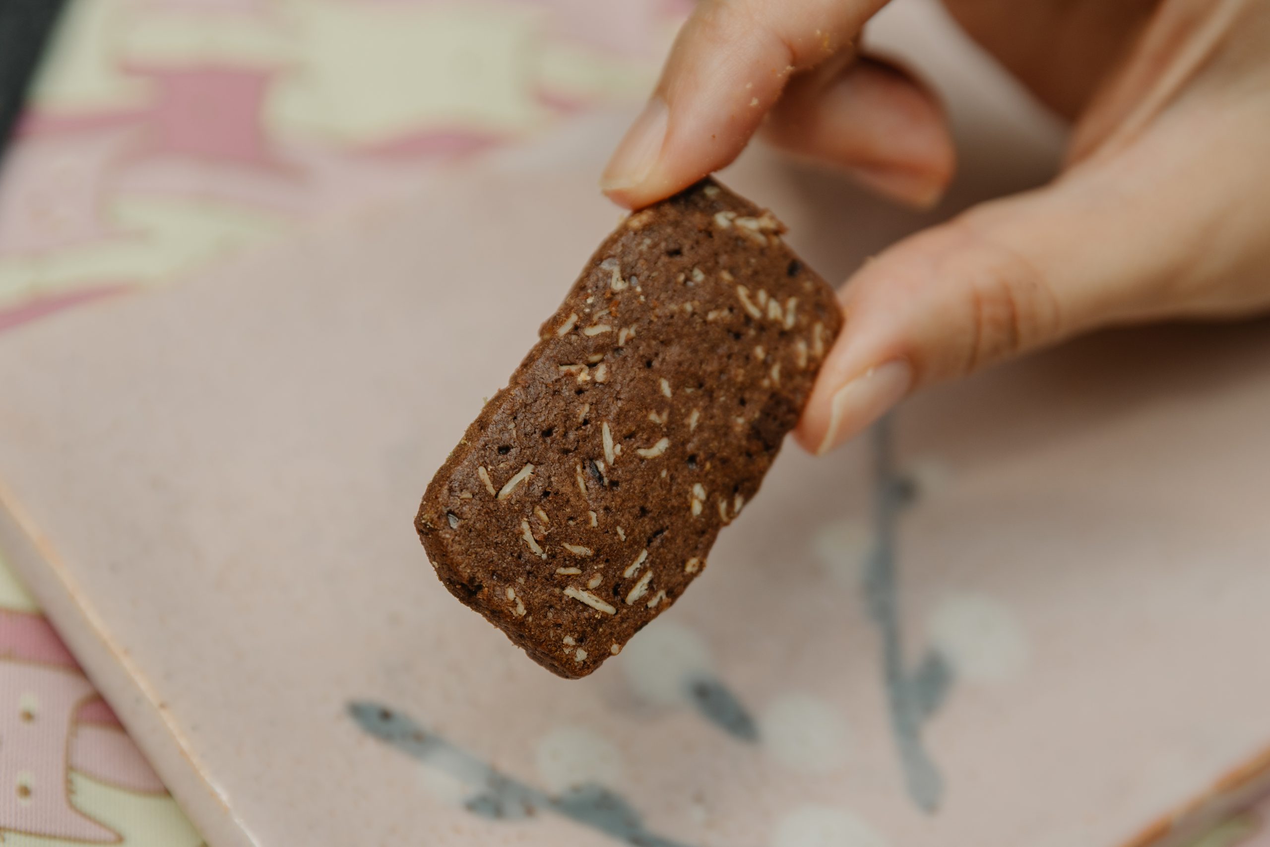 喜餅我最愛挑巧克力口味的餅乾,看起來是喜餅常出現的品項。但這款「可可燕麥」卻有著獨特的魅力,咬下去是扎實的「顆粒感」,每一口都能感受到燕麥的實在與耐嚼。可可調味是溫和的點綴,僅僅帶來一抹香氣,讓穀物本身的樸實香甜成為主角。