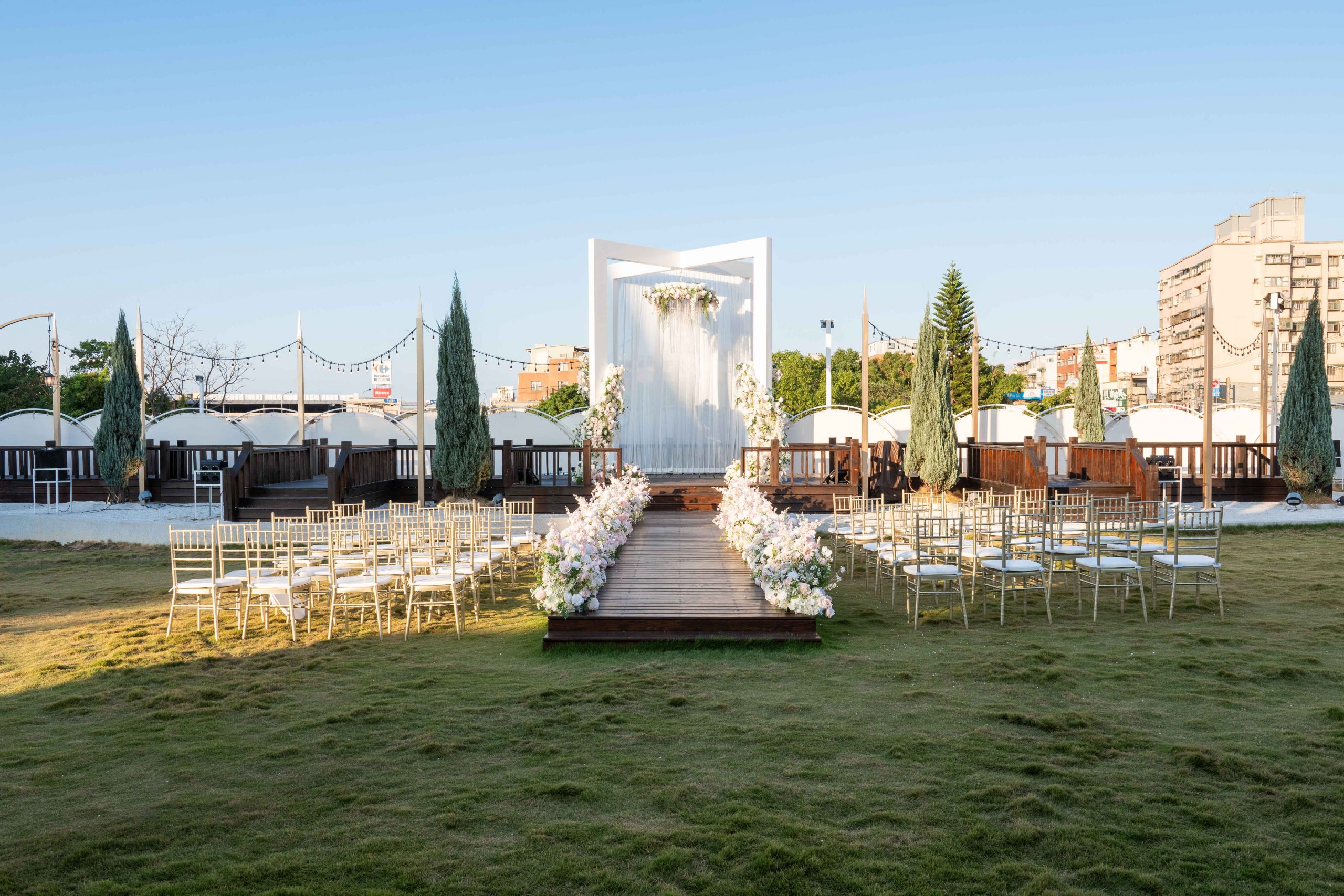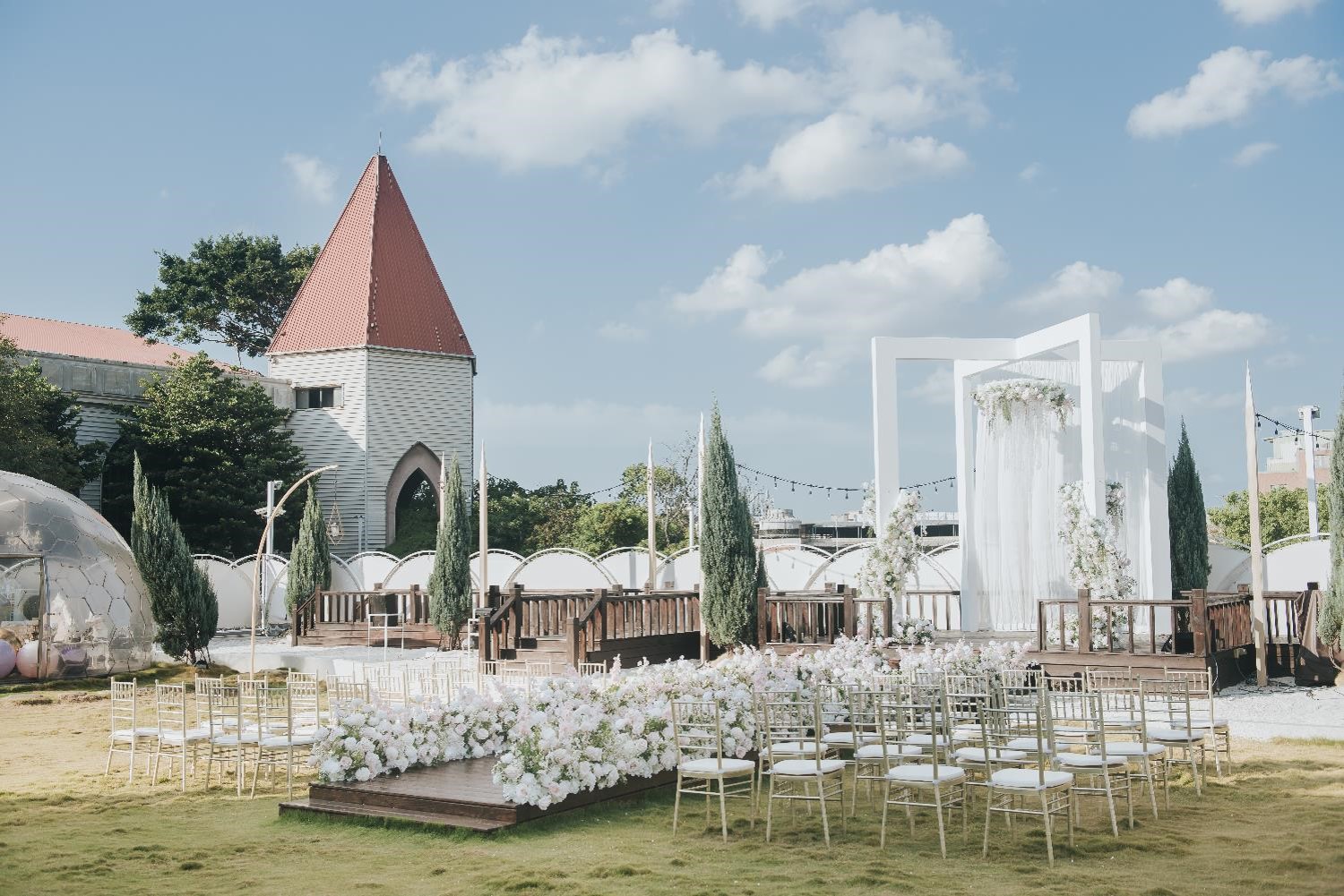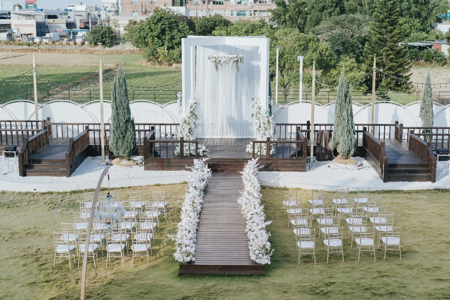 走進戶外草地區,眼前是一片綠意延伸的婚禮舞台。