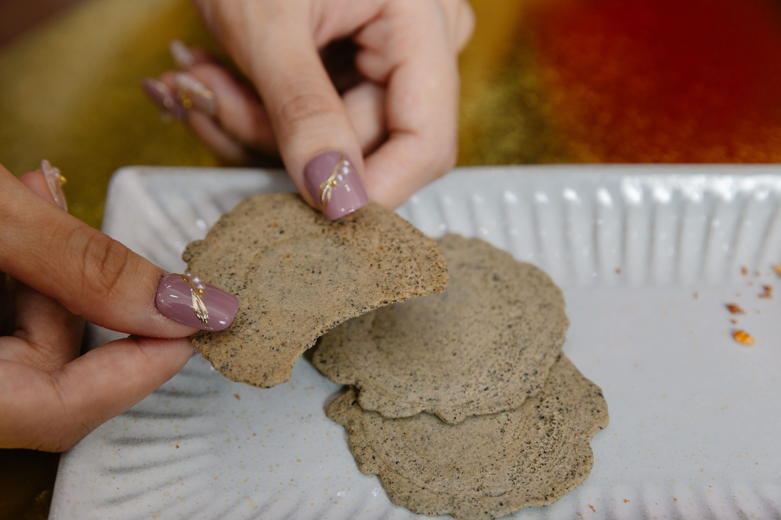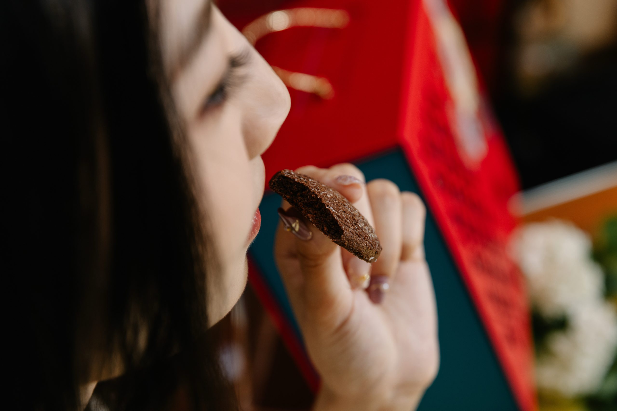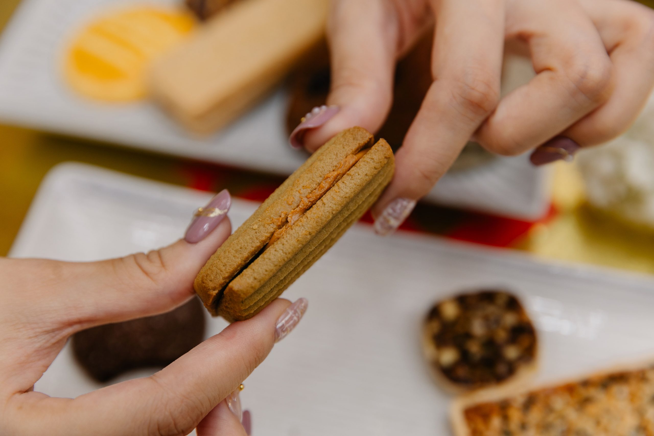 餅乾在口中迅速融化,茶葉細末或內餡帶來細微的顆粒感,極致的酥脆但又不黏牙。