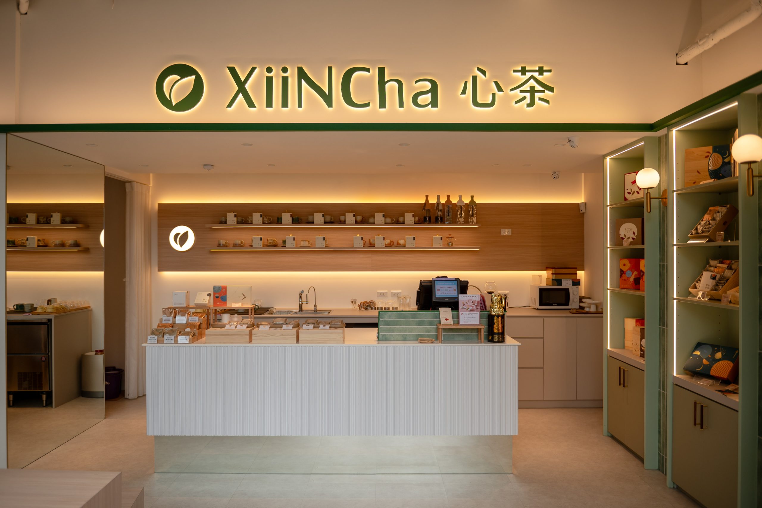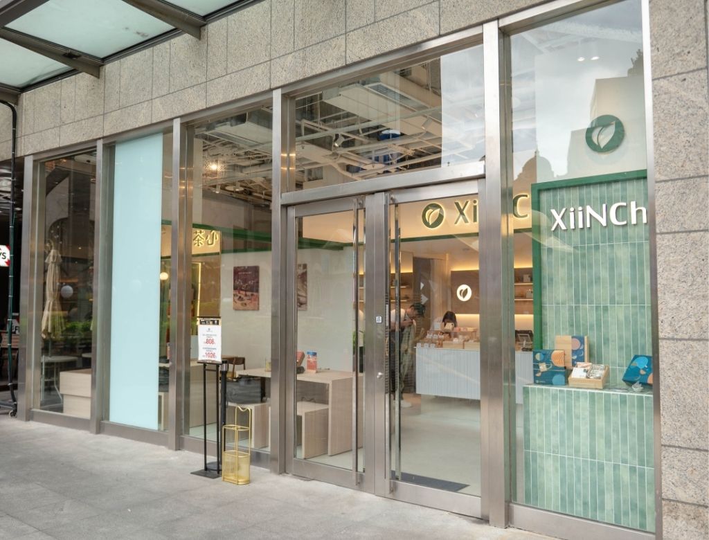 它不是傳統茶行的那種復古風,而是超級現代感的簡約設計。大片的落地玻璃讓自然光線灑進來,整個空間超明亮!
