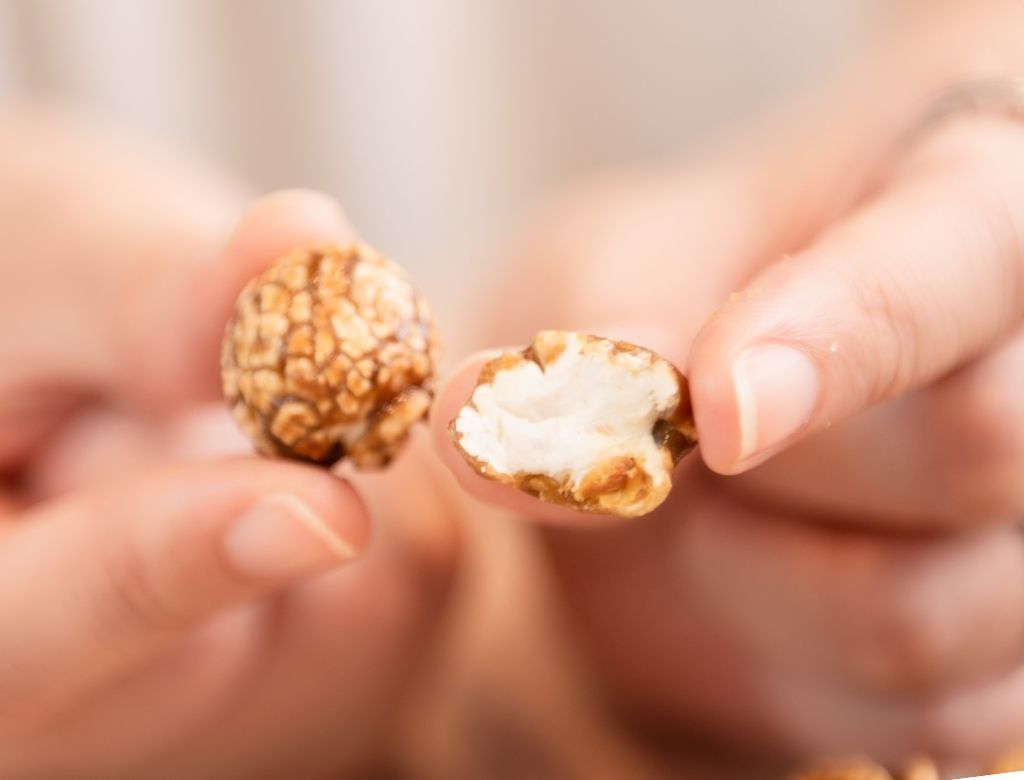 這是一個充滿驚喜的爆米花,有兩種口味和束町焙、台東紅烏龍。將爆米花裹上輕薄糖衣,甜香中隱藏著一抹淡淡的茶香,讓它的甜度立刻變得有層次且不單調,口感酥脆又不黏牙,會讓人忍不住一口接一口,這款大人小孩都會很喜歡。