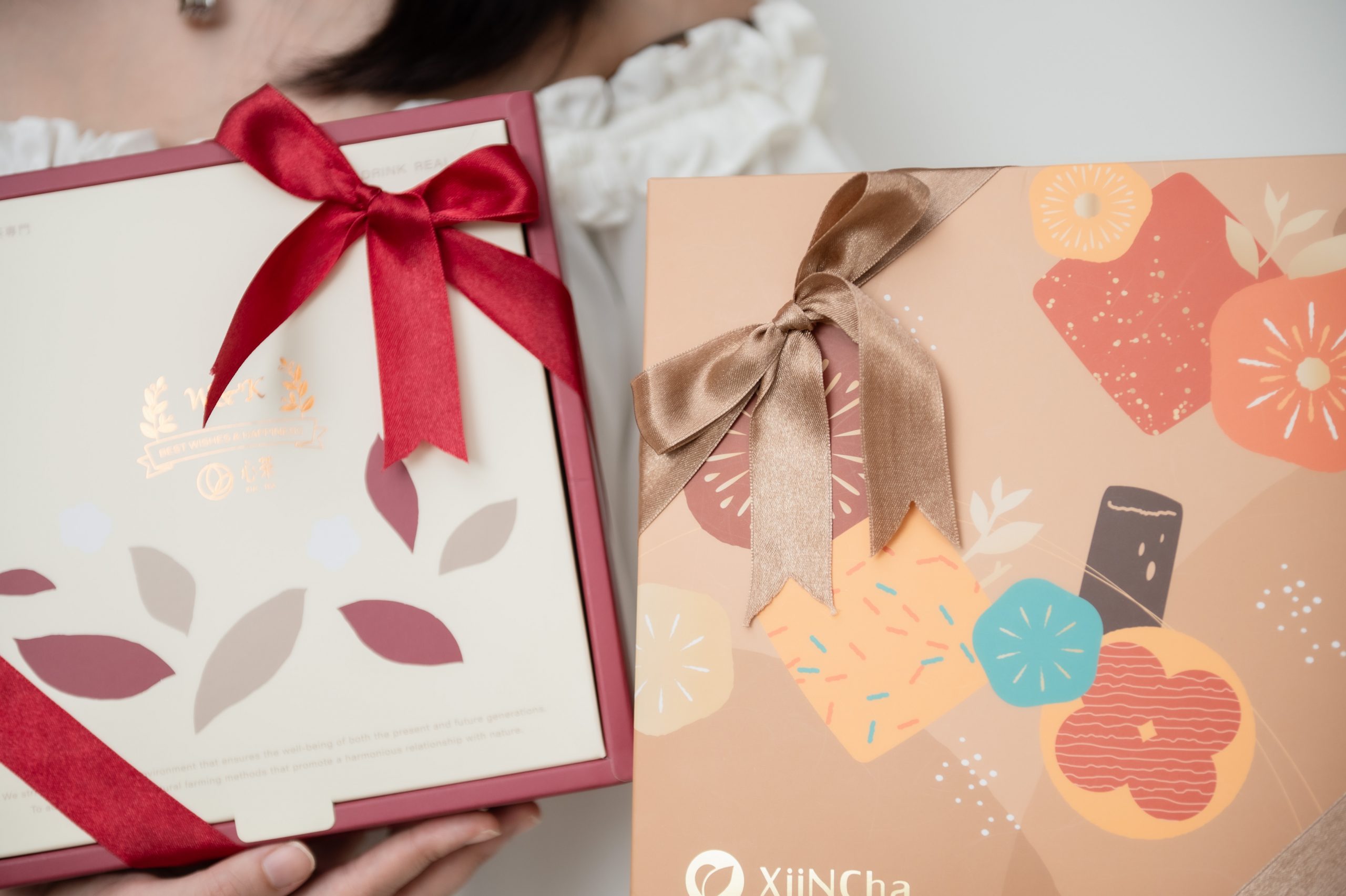 心茶禮盒有很多款式,連緞帶都有兩個顏色可以選擇!