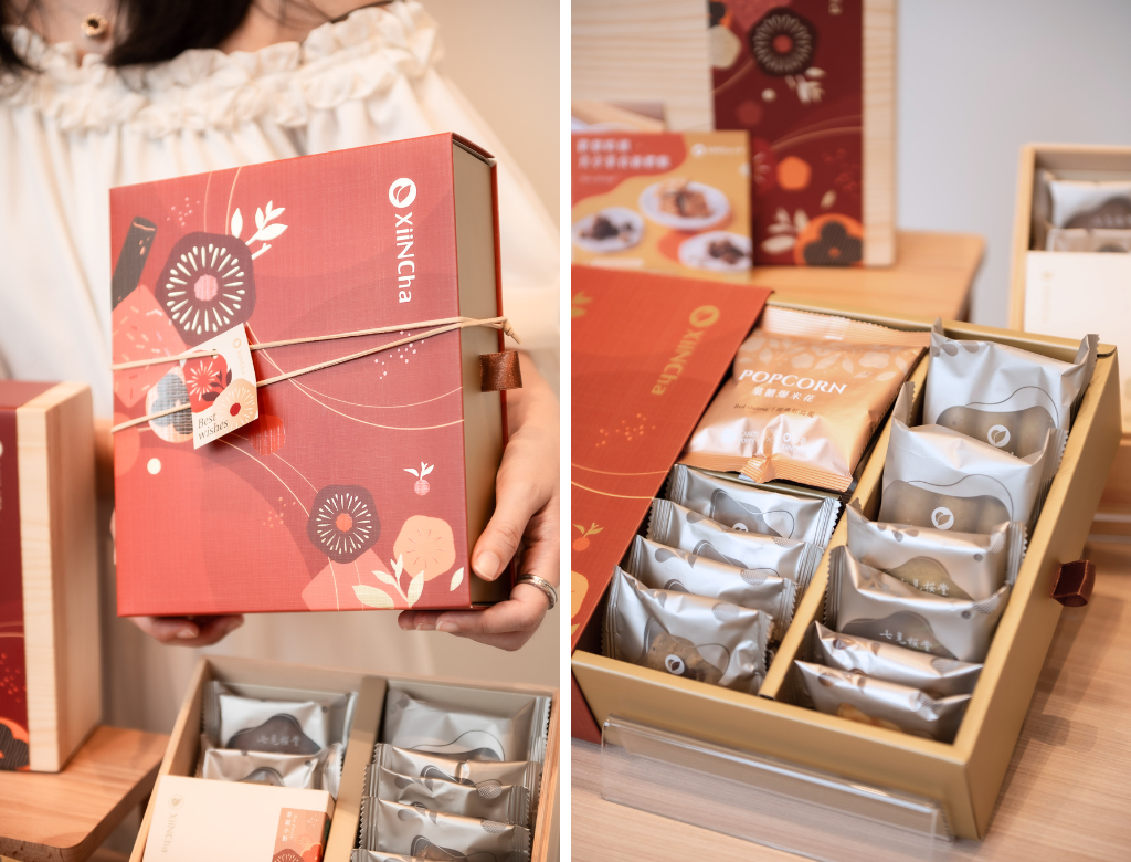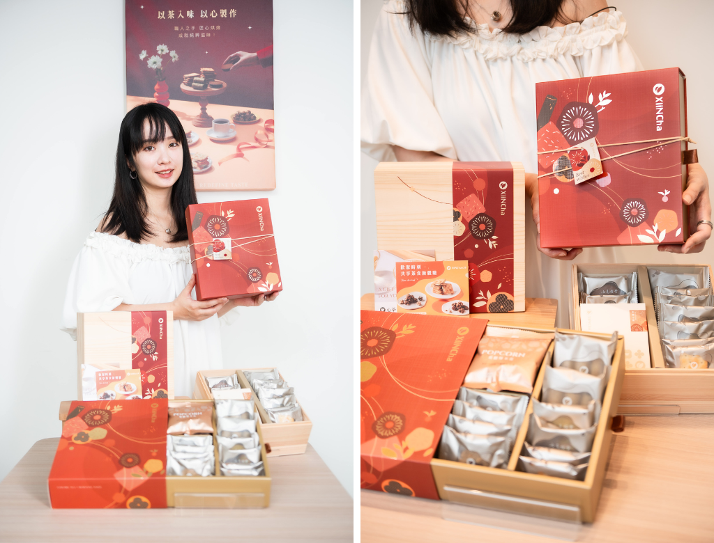 送餅不只要求好吃,更要夠有新意,心茶完全打中我! 最大的原因就是「濃茶系的茶點」,主打不含農藥的天然茶葉製成,這在其他品牌中可是難得一見的獨特創意!不是螞蟻人的我超喜歡,每一款茶點都能感受到茶香的層次變化,很適合搭配熱茶享用。最重要的是,心茶的禮盒客製化自由度很高,從燙金Logo客製化到腰封都能調整,連台積電跟虎航都是客戶,品質跟價值感完全不用擔心!
