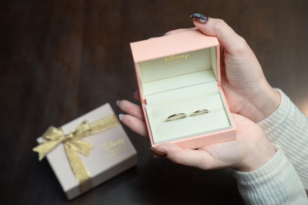 最特別的是,兩只對戒的內圈都刻有戴著魔法帽的米奇剪影,