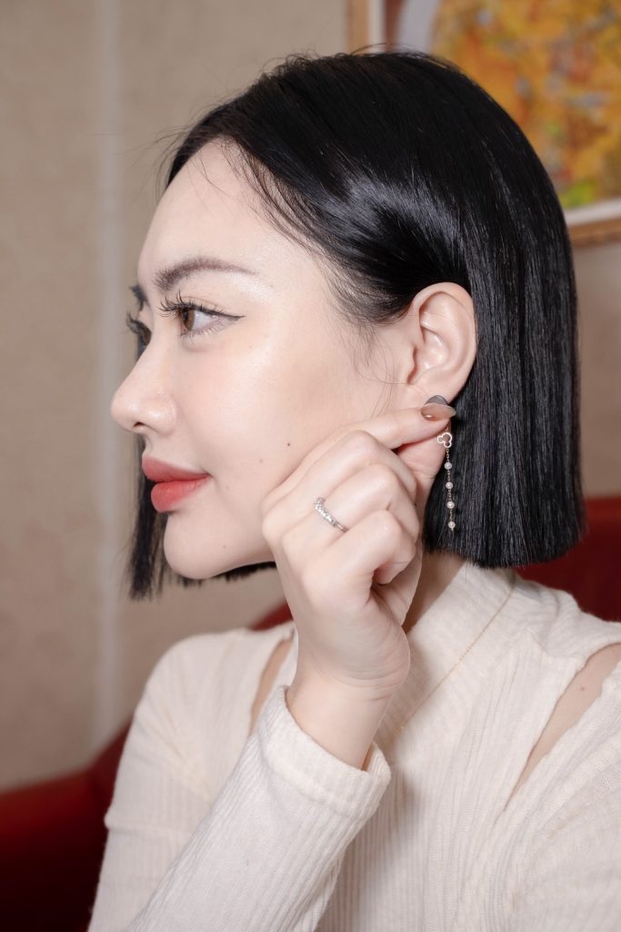 以簍空方式呈現,在鑽石下方托起一抹專屬於她的俏皮優雅。