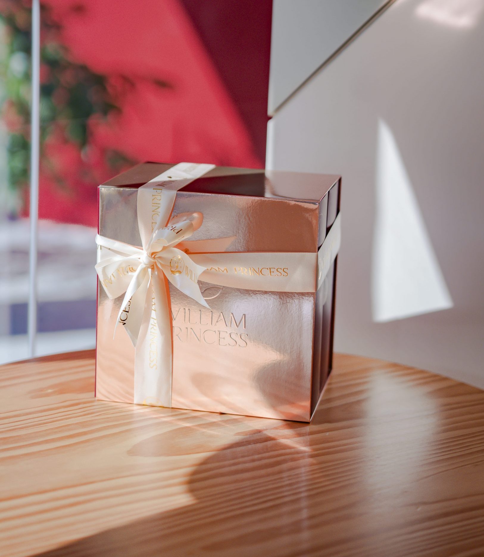 玫瑰香檳金色亮面外盒,就像彼此獨一無二的愛情一樣閃耀