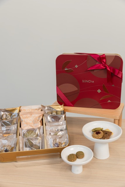 在喜餅禮盒中,也能選擇搭配茶包,讓賓客在品嚐餅乾時,多一份茶香陪伴。