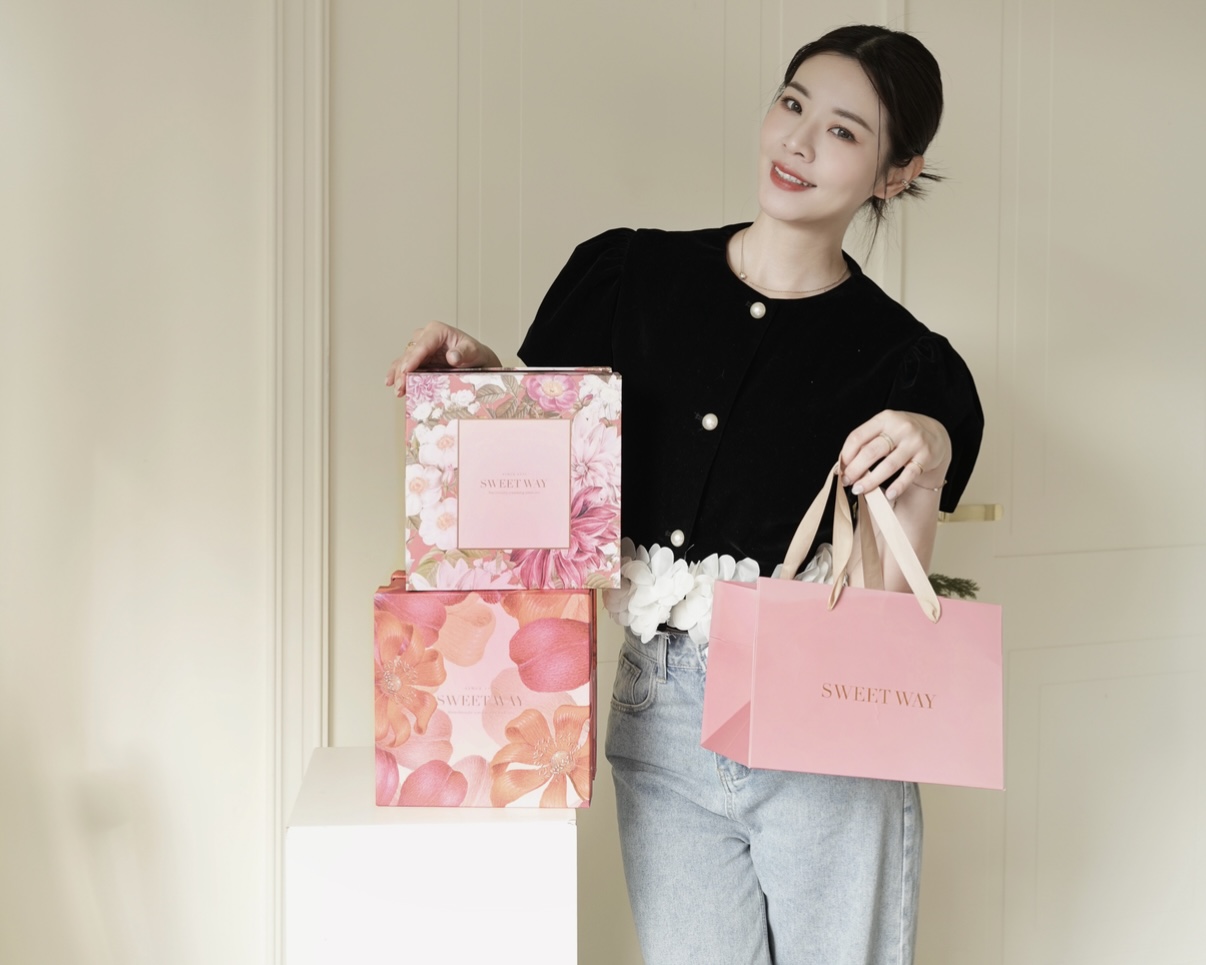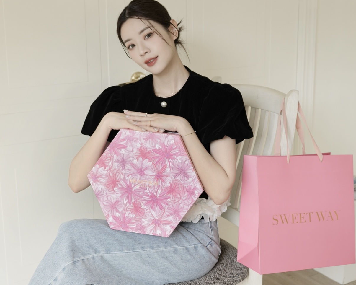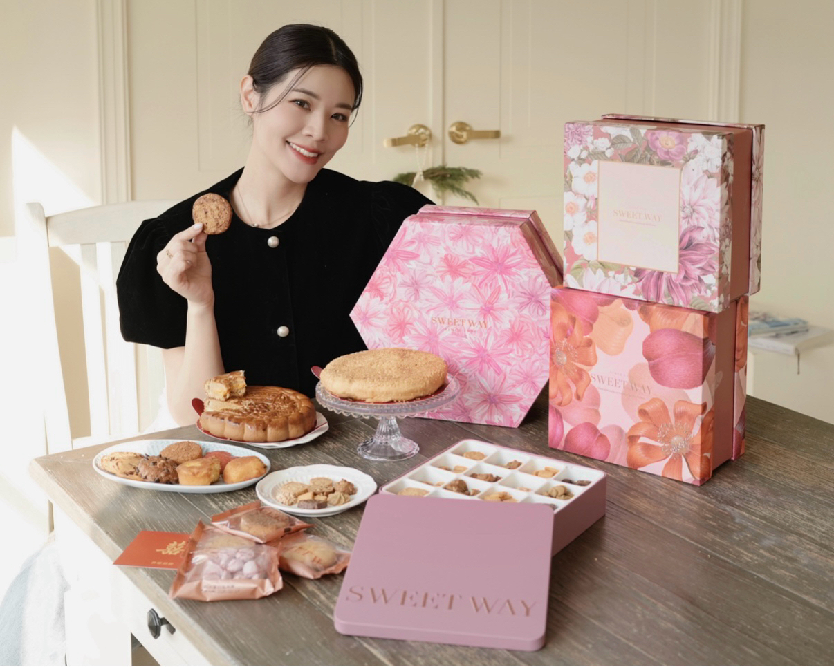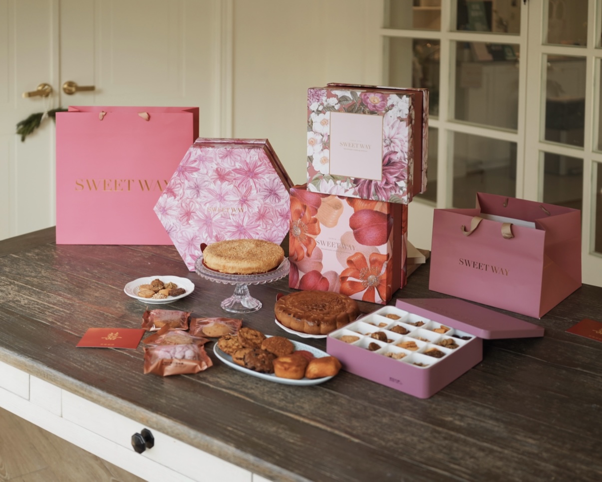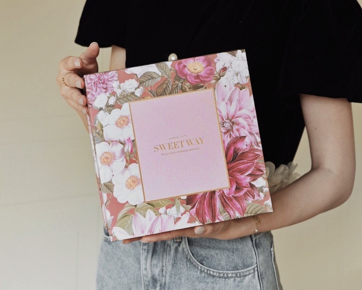 而且禮盒選用花卉、幾何圖案還有燙金點綴,粉粉嫩嫩充滿喜氣