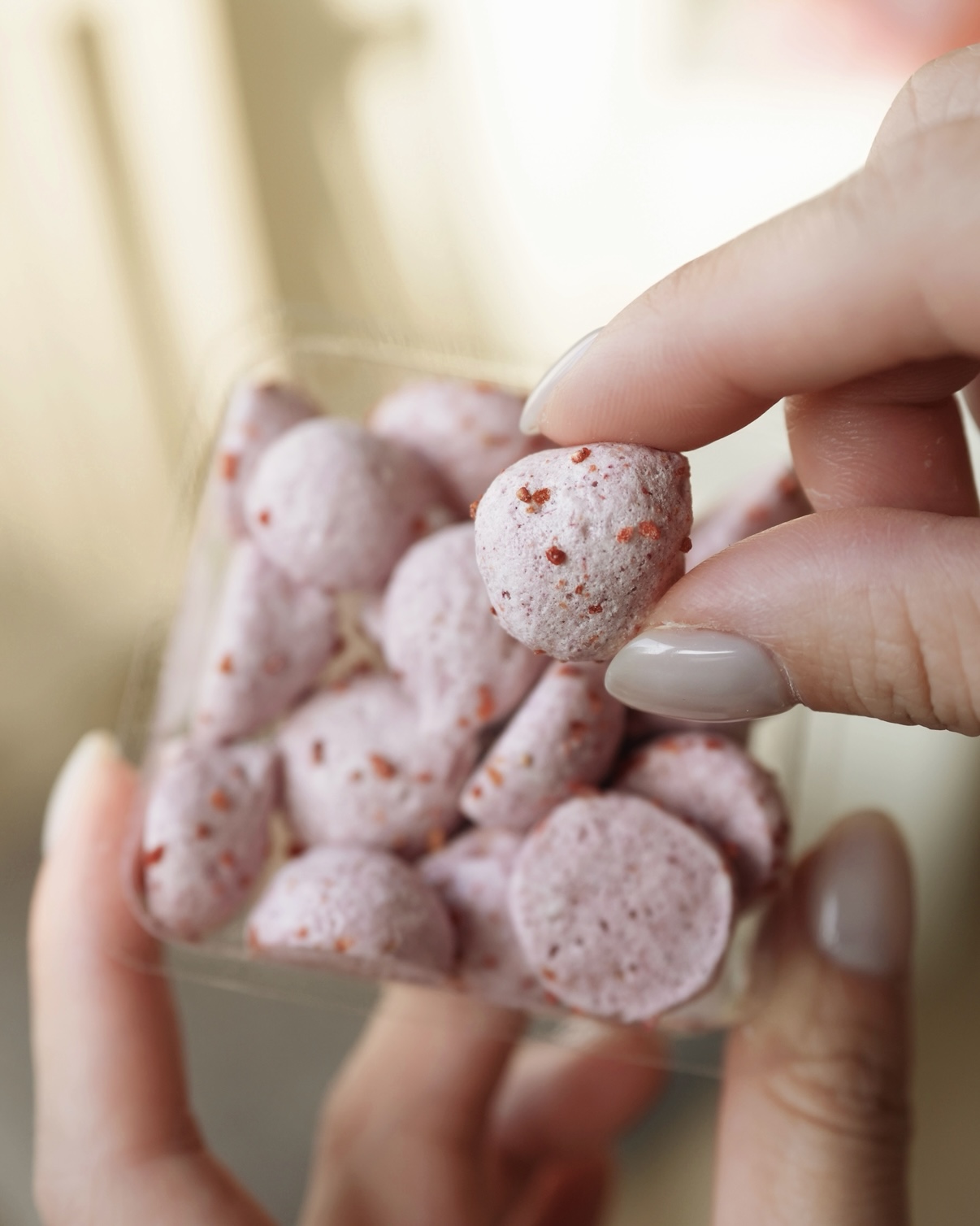 以細緻義式蛋白霜為基礎,融合酸甜莓果風味,經低溫烘烤至酥脆