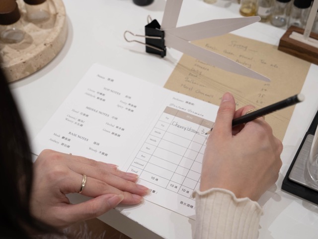 新人可以事先預約互動式調香課程,在婚禮前選擇好這場婚禮的專屬氣味