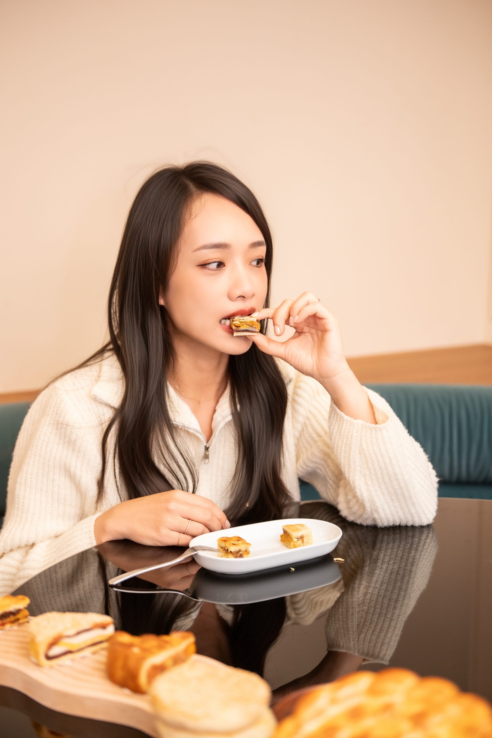 |蛋白霜、鹹蛋黃布列塔尼、藍莓焙焙、松露可可、焦糖奶油餅、紅烏龍果香茶餅|