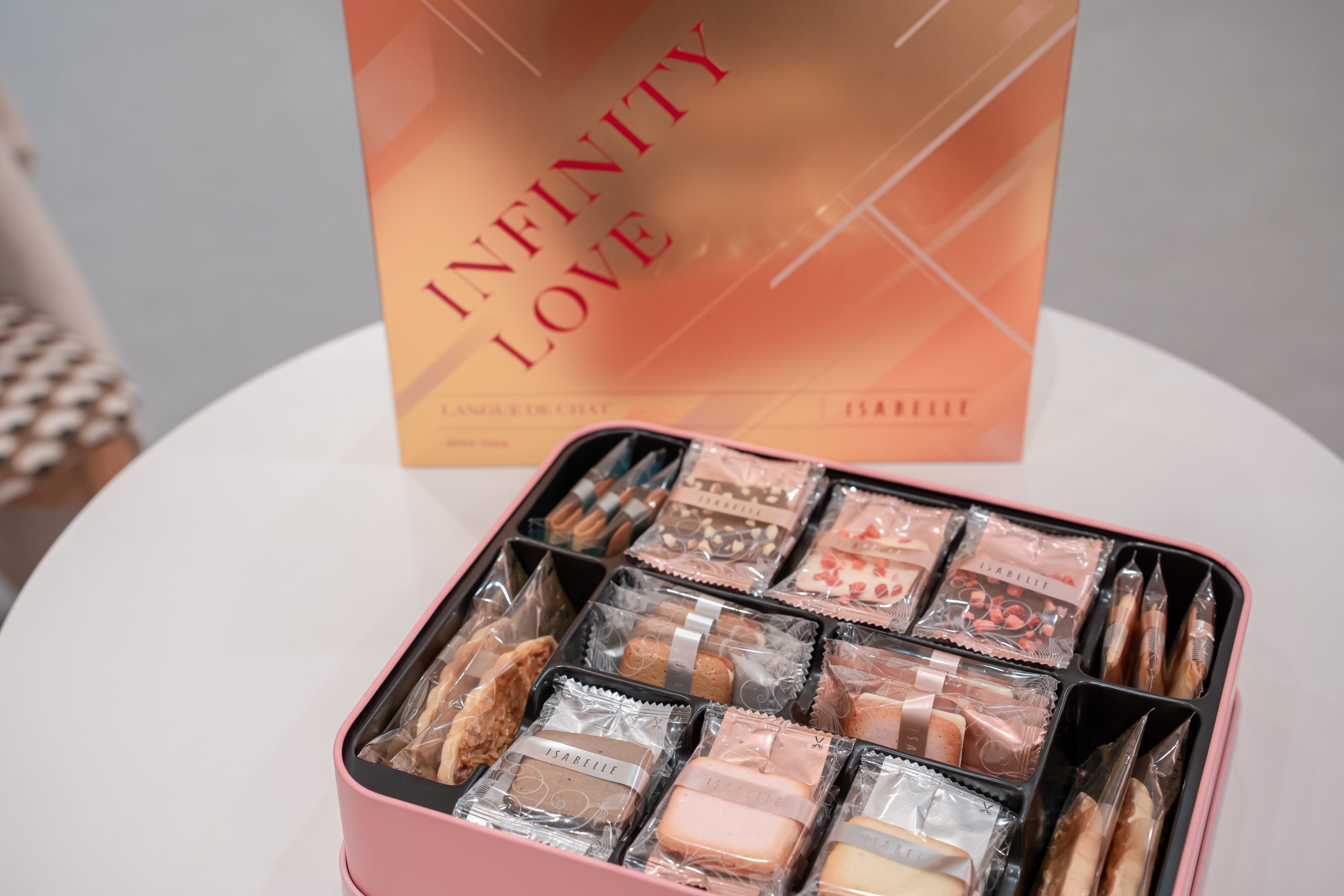 盒面「INFINITY LOVE」概念,把愛的延續感做得很完整,很有婚禮的象徵意義