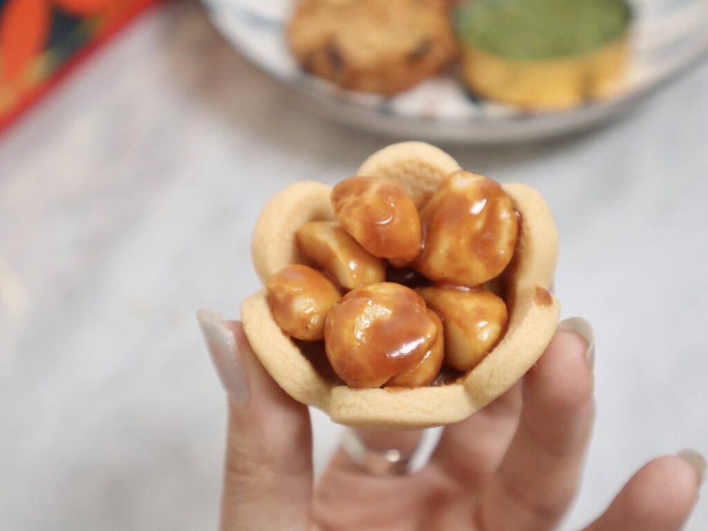花蕊是由裹著焦糖衣的夏威夷豆所組成
