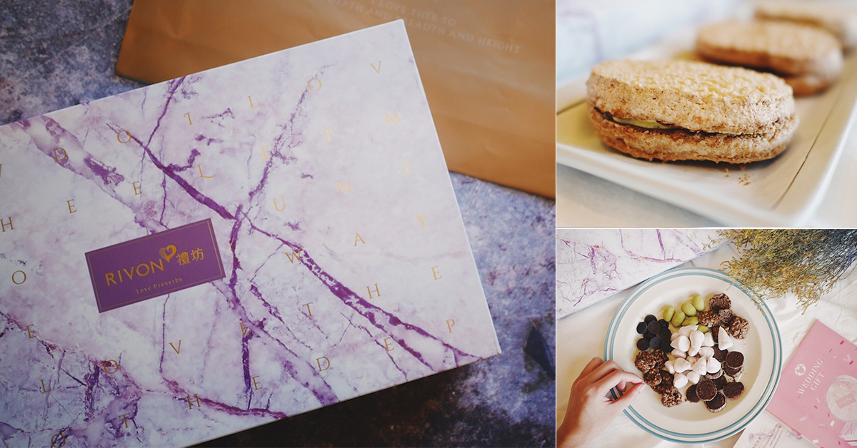 RIVON禮坊 新法式手工喜餅 韻愛禮盒 我猜想,你大概也是被漂亮的粉紫大理石包裝給吸引了吧? 一眼望去,這盒大理石喜餅 …