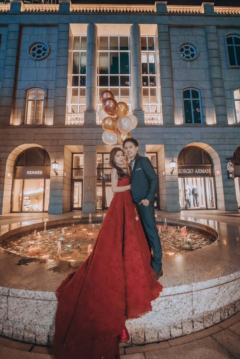 拍照當天,帶著緊張又期待的心情,見到了當初選的攝影師汪sir、造型師Hahaha和燈光師,一大早開妝造型師就提早到,開始詢問我們有沒有需要幫忙的事項,且事前討論造型也細心回覆給予專業的意見,當天的三套造型都非常喜歡,比許願的樣子更好,當天也很盡責看著新人的狀態,幫忙側拍,很感謝她。攝影師十分專業,到每個點都能很快速地拍出我們喜歡的構圖,且給予動作指導,效率且有收穫美美的照片,很讚,事後調色也很喜歡。燈光師總是很盡責幫忙整理裙襬西裝,看到捧花也會主動詢問我們需要甚麼款式,並提供建議。拍攝日是令人舒服又滿意的一天。