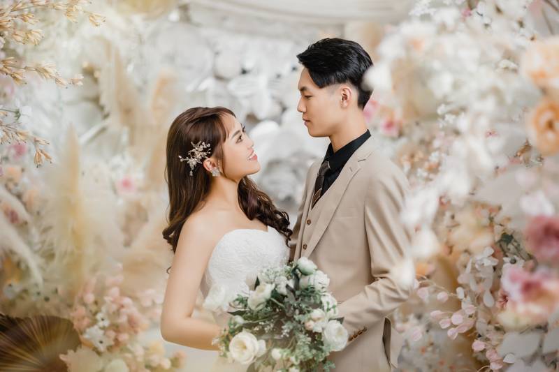 挑禮服的部分是交給祐祐,因為婚紗百百種,有些太華麗我怕我撐不起來,有些顏色又令我招架不住,後來只挑了2、3件,試穿後只剩1、2件滿意的,最後直接讓祐祐幫我挑,祐祐挑的讓我穿上後是真的有喜歡、滿意的那種❤️