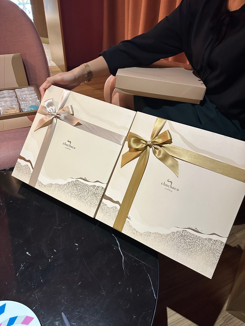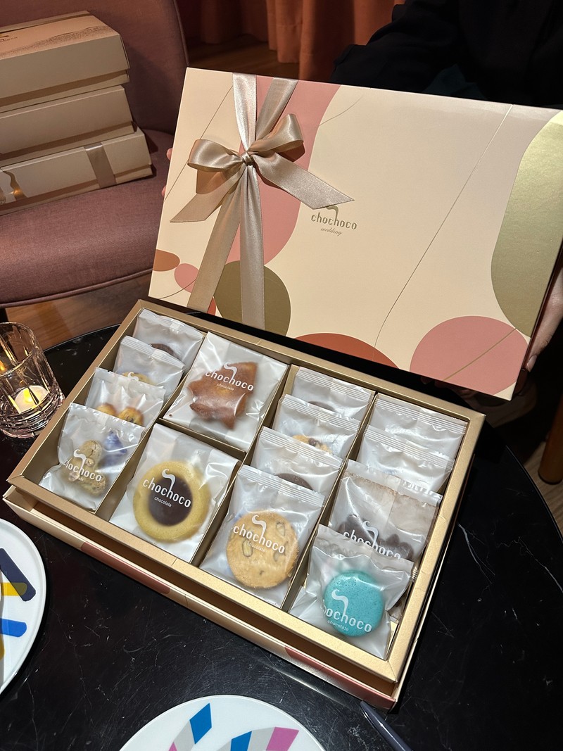 今年9月到了Chochoco台北門市試吃喜餅,環境舒服氣氛讓人放鬆,也有簾幕隔開不同組顧客,服務人員非常專業介紹各式糕點,也針對熱門款式讓我們試吃,同時備有熱茶可以享用,整個體驗下來非常讓人滿意,所以就毫不猶豫付訂金下單,後續服務人員也會主動e-mail提醒相關注意事項,讓人很放心,整體都讚讚👍