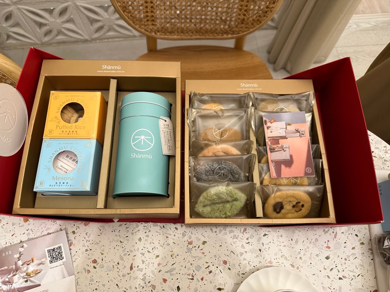 一開始看到廣告都是被紅色的禮盒外觀給吸引,到了門市現場我老婆更是喜歡那個香檳金的配色,所以後面才會變成選用兩種外包裝的想法,這是我們第一家試吃的喜餅,也是當下直接就下訂了,真的太好吃了,沒有什麼好猶豫的,喜餅找山木島就對了❤️