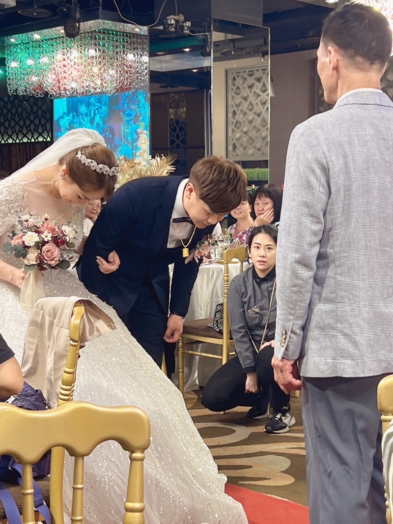 開始和Amanda溝通整個婚禮流程時,她很有耐心服務很親切,我們是訂婚+結婚一起還要在下午前結束,其實辦流程來說會比較趕,由於訂婚還要看時辰關係,很難掌握好時間,但當天Amanda把整個時間掌握非常恰當,還要控制現場一切可能發生的因素,辛苦她了。討論第二次婚禮企劃時桌數一直不確定,到婚禮前幾天還很臨時還加了幾桌Amanda還幫我們去跟公司拜託才得已增加桌數。婚禮前一天台北彭園還能幫忙代收喜餅、酒類,婚禮東西還能前一天放在新娘室非常方便。
