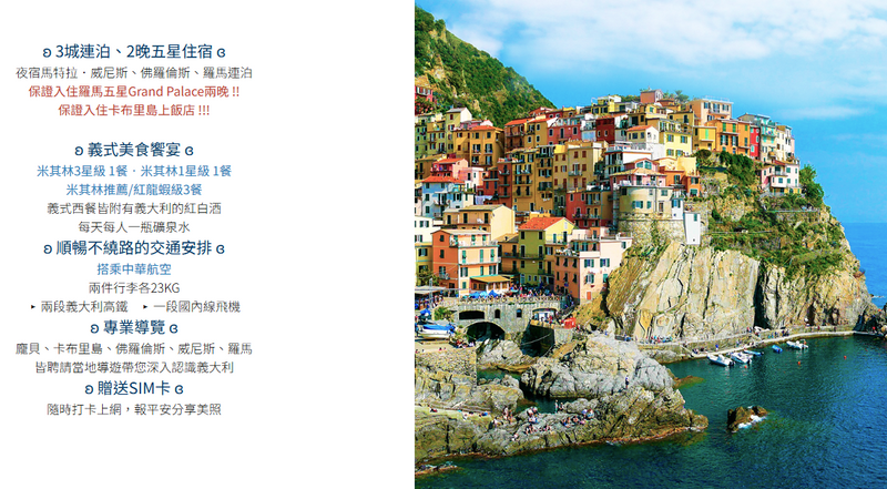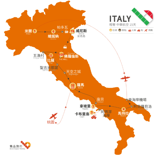 選擇義大利,除了他們對那裡的著名景點和歷史遺跡耳熟能詳且感興趣之外,主要是擔心爸媽可能不太習慣歐洲的食物,而義大利的料理對亞洲人口味比較能接受,因此最終選擇了義大利。