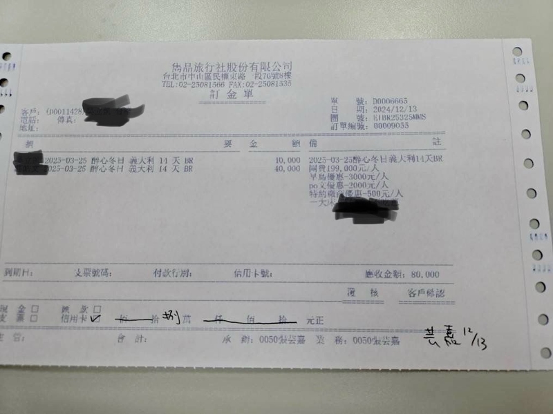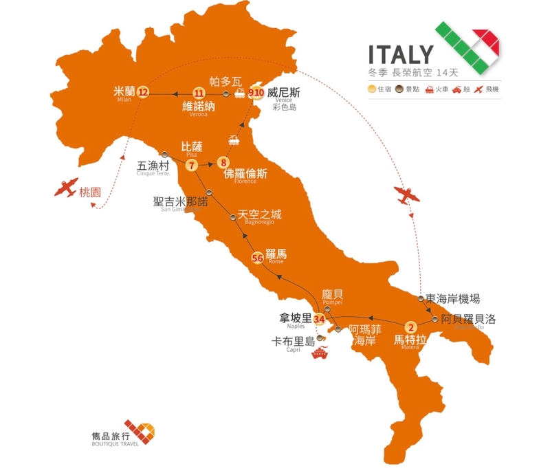 的「醉心.冬日義大利14天(長榮)」