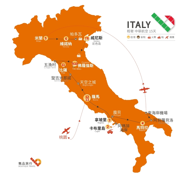 雋品的義大利也有很多團,最終我們選擇了「冬戀.輕奢 義大利15天」,雖然沒有標榜蜜月團,但旅行社表示:我們客群8、9成都是夫妻蜜月啦~