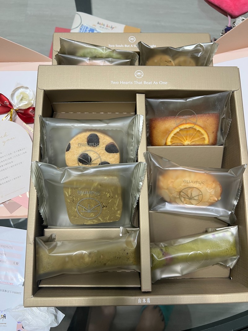 我是8月即將要結婚的新人新娘本人,在籌備婚禮的過程,不免俗的來到挑喜餅這個步驟,剛開始我就想說先到婚紗展看看,做做功課,也可以知道自己的方向再哪裡,由於身旁很多親朋好友有結婚了,我也想讓身旁的大家吃到不一樣的喜餅,最後選擇法絨法式手工喜餅與shānmù 山木島再做比較,後來發現shānmù 山木島的喜餅都非常獨特,都以台灣在地的味道與喜餅做結合,有別於其他品牌喜餅的風格,以及禮盒的包裝顏色及設計是屬於柔美及典雅獨特的風格帶一點貴氣感,所以我也沒到法絨法式手工喜餅去試吃,就一心決定大喜之日的喜餅就交給shānmù 山木島,之後他們也送一盒回來跟家人一起試吃,挑選出大家最喜歡的味道,每個口味真的都很特別,所以我們決定把他們的充滿台灣獨特滋味結合我們的喜事分享給親朋好友,每一塊喜餅第一口咬下去 都讓我驚呼連連,真的是非常的特別,而且完全不會有膩口的感覺(也不會太甜),真的非常感動及感謝,shānmù 山木島真的是個不會讓人失望的選擇,很開心自己選擇Shānmù 山木島😊