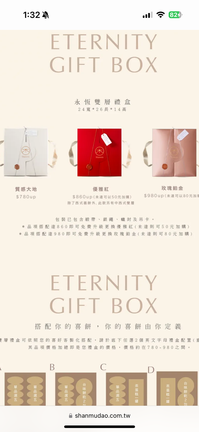 服務人員都有給予想當多我和先生討論的時間,空間舒適及包廂環境毫無壓迫感。當下就和先生說「我想要這家」,先生也喜歡特別提到雙層的禮盒好棒,完完全全符合我們夫妻所想要的,當天就下訂付訂金了。我是選擇A+C雙層禮盒 幾乎所有喜歡的口味都放進去了,各種優惠後,價格超划算的!