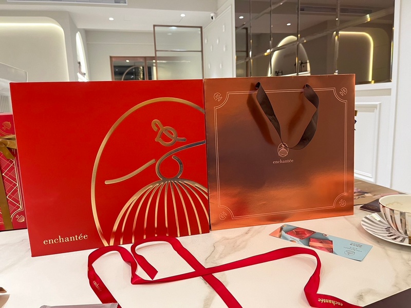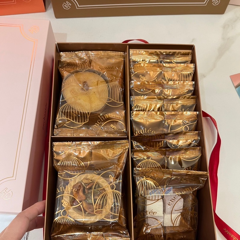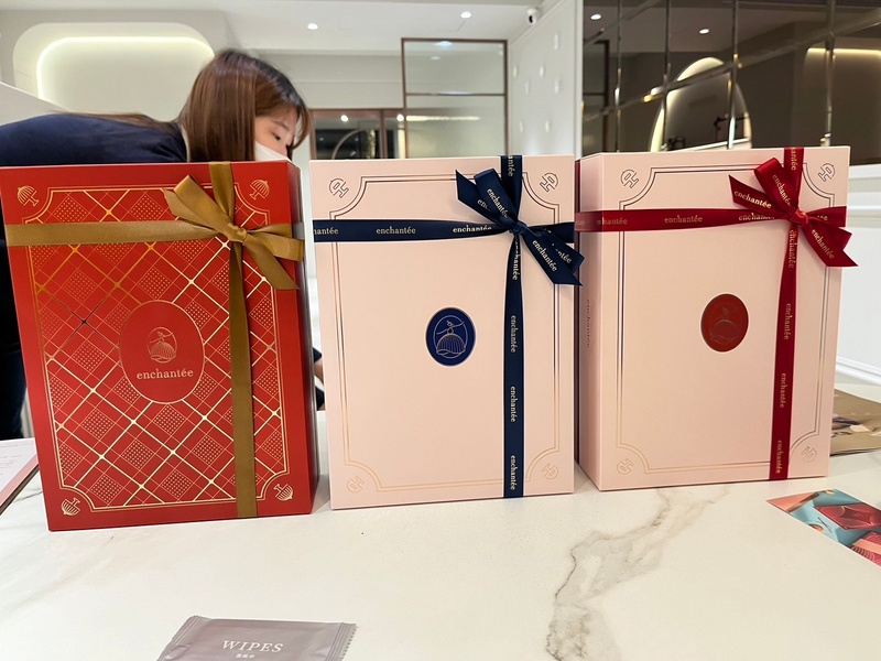 我們是預約實體門市試吃,門市在捷運忠孝新生站附近,從捷運走過來約5分多鐘,當天一進去的時候只有我們這組在試吃,整個店面十份明亮,牆面擺滿了不同款式的空盒展示,完全一目瞭然~~我覺得他們照片上的包裝盒沒有實際看到的漂亮,實際看到後那個經典的紅白色盒子很好看,簡約卻不失質感,紅色鑲嵌金色線條的菱格紋有種低調奢華的感覺,感覺是長輩會喜歡的樣式,我們盒數大約是50幾盒,可以選混搭2種款式出貨。