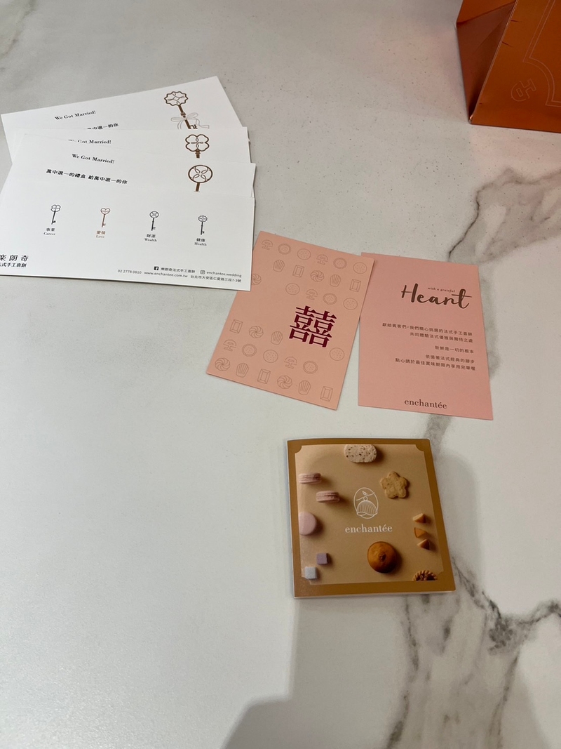 我們來試吃前,另先試吃一家傳統連鎖品牌的喜餅,有含中式大餅的款式,外加品項多,價格實惠,完全符合長輩的需求,但因緣際會有一張婚紗公司送的喜餅試吃卷,想說多看幾家比較一下,意外發現這家在各方面比較下,禮盒質感、口味,更符合我心中所想要的喜餅,雖然價格較貴,但當天下訂有額外優惠,折扣下來的金額,也是可以接受的範圍。建議喜歡的人可以放到最後一家再過來,減少當下如此糾結的心情。 很開心最後選擇了樂朗奇,希望宴客那天收到的親友們,大家也都可以吃得很開心😎。 提供給正在挑選喜餅路上的準新人一些參考,希望對大家有點幫助。❤️