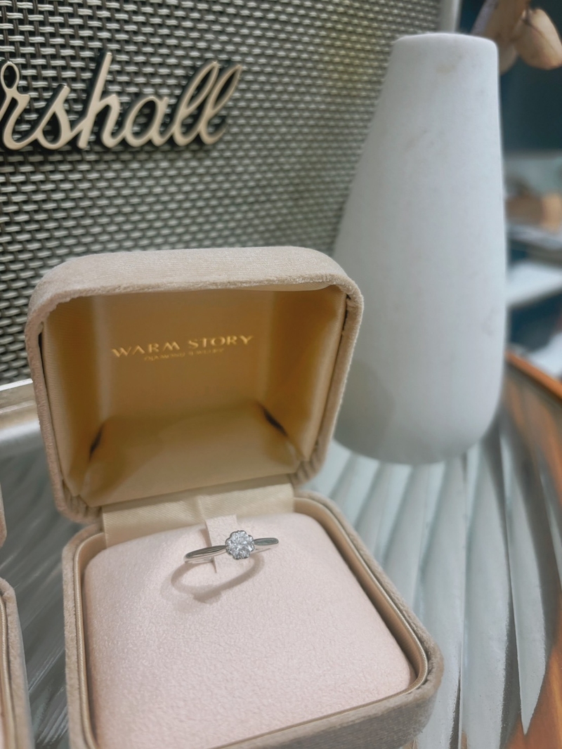 一開始就很喜歡培育鑽的理念,也找到很喜歡的鑽戒! 搭配婚戒疊帶也很適合