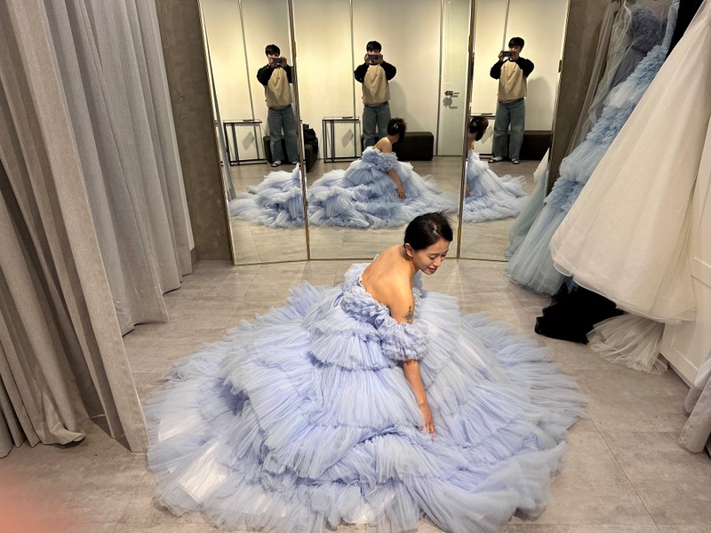 化妝師 Risa 隨時在確認新人妝髮狀態 不用擔心拍攝過程脫妝 頭髮亂掉之類的狀況