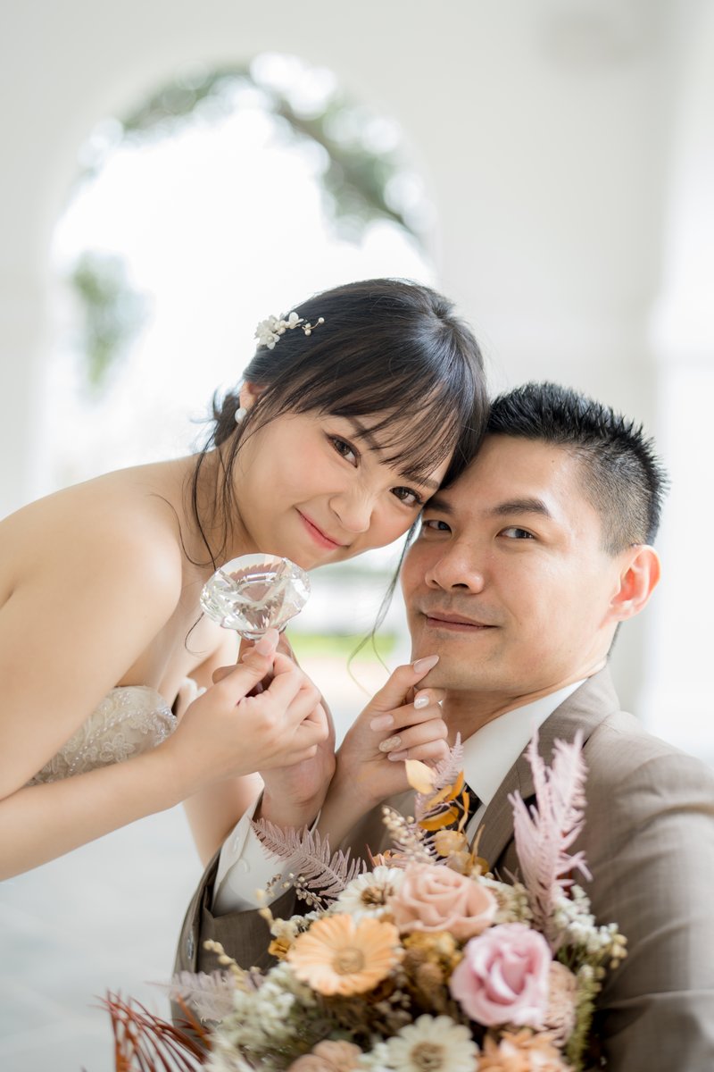 造型師跟攝影師分別是Monfi老師跟阿木老師,拍攝當天的妝髮真的太喜歡了,完全跟溝通時我想要的一樣,妝感很自然減齡,化妝的時候也很溫柔,沒有任何不適,第一次戴隱眼的我,老師還花時間幫我戴🤣真是不好意思,原本想說我跟老公兩個I人,面對鏡頭會很羞澀,但阿木老師在拍攝時候會引導,讓我們有自然不尷尬的動作跟笑容,拍出來的成果真的好好看!