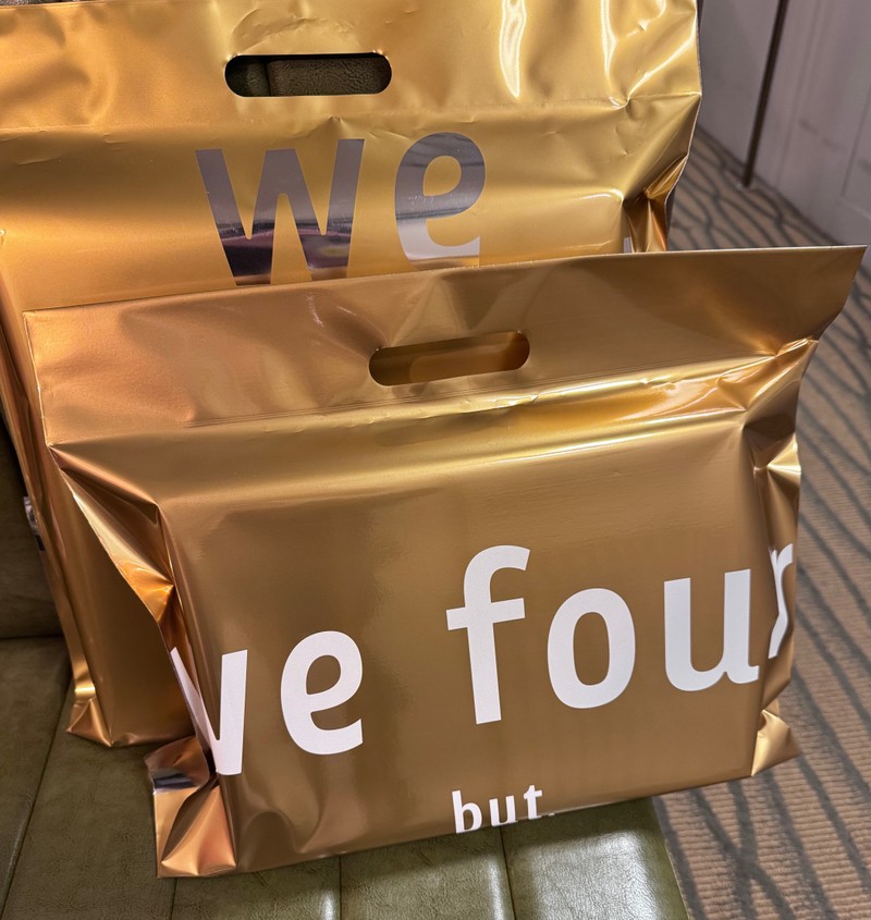 but.喜餅的金色提袋,實體非常有設計感也很漂亮~