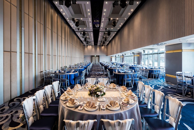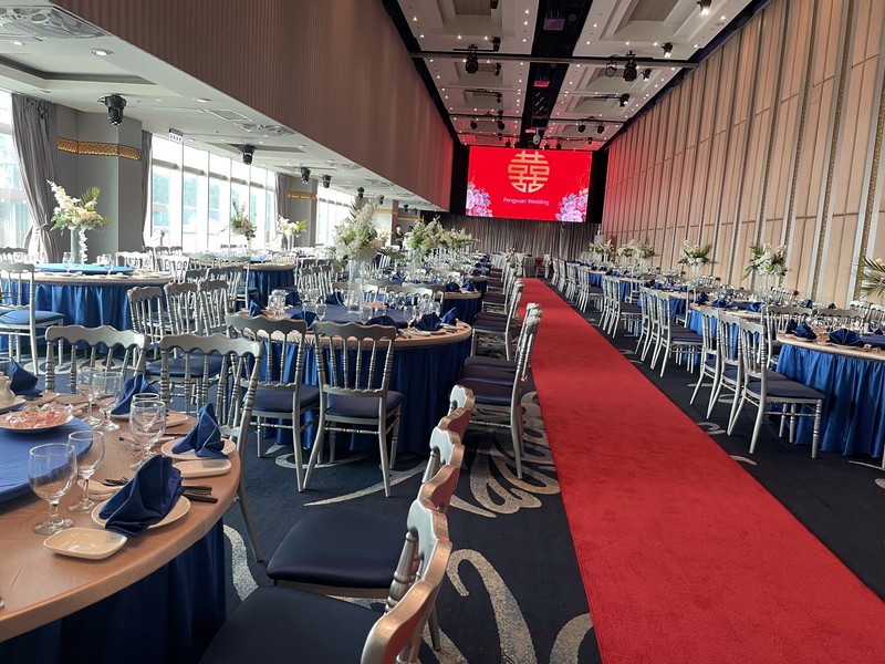 現場裝潢典雅又浪漫,燈光設計也很有氣氛,讓人一進去就能感受到幸福感,不管是是白天或晚上舉辦婚宴都很推薦❤️有海景還有世界知名的郵輪襯托,這樣美的氛圍我們找不到第二個