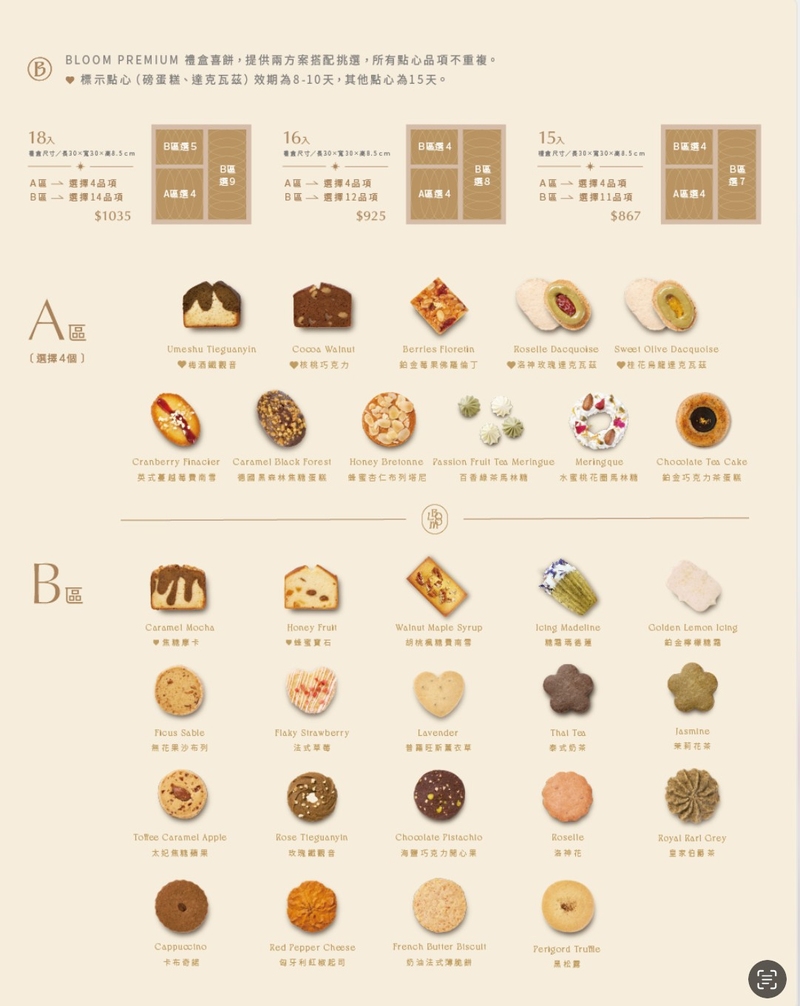 114年4月中去試吃,門市很明亮,試吃環境很舒服,試吃了12種熱門品項。蛋糕比重偏高,吃起來濕潤可口,餅乾酥鬆,整盒層次很豐富,甜度適中,配茶配咖啡也很好吃,整體是我很愛的款式。黑松露,泰奶,口味特殊很有記憶點,感覺是會讓親友印象深刻的禮盒,我原本貪吃的想吃10間喜餅,結果還沒達標就決定下訂了。