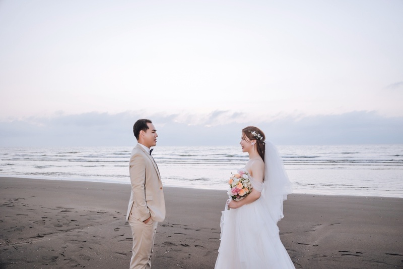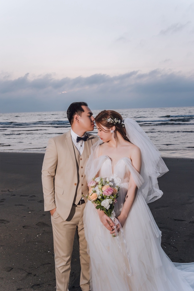 他拍照的節奏掌握得很快速,也會讓我們看拍攝成果,確保我們滿意。他設備準備得很完整,我們想要的場景、風格,他都盡力幫我們安排。最讓我印象深刻的是,他陪我們等夕陽,只因為我有說過「如果能拍海邊夕陽更好」,雖然那天因爲天氣關係拍不到夕陽本身,但真的很感謝他那份用心還有專業,照片超級喜歡,大家往下滑看看照片!