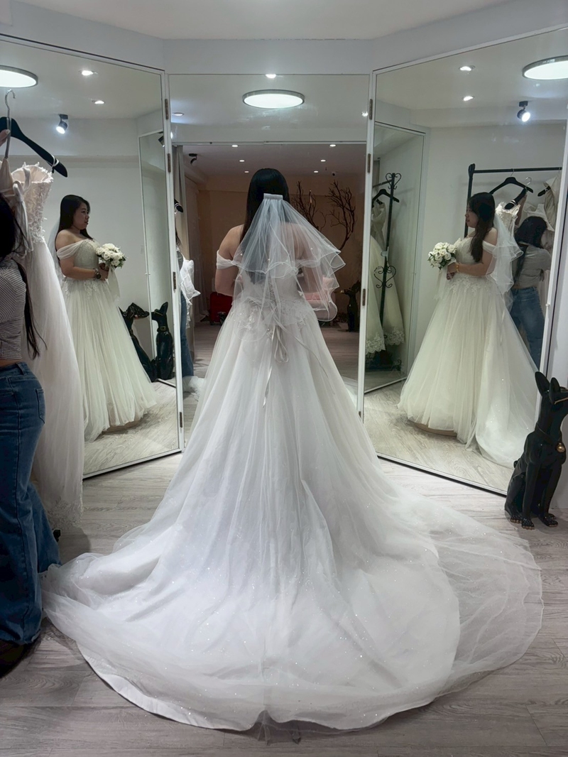 挑禮服的時候,禮秘 瑀柔非常親切,會一直陪你聊天,了解你想要的風格,之前看的禮服照片只要有在現場的,都有拿來試,瑀柔也會推薦他覺得適合的禮服,沒有限制試的數量,也沒有所謂的加價禮服,這部分很棒,可以放心的挑選適合自己的禮服。