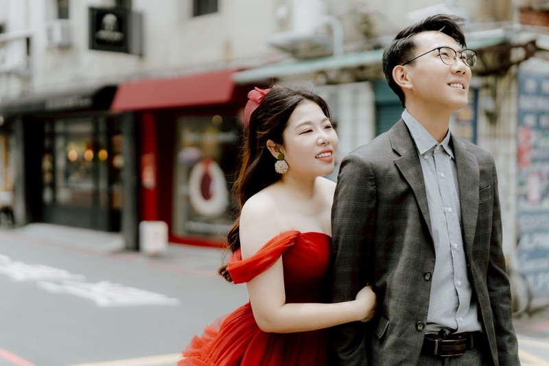 在修改期間,攝影師 Lucy有過來跟我們確認拍攝的風格以及拍攝地點路線,因為我們不是台北人,再加上拍攝日剛好是假日,很多地點不能去,感謝Lucy跟瑀柔提供了很多地點,最後終於敲定在大同大學以及赤峰街拍攝,除了計程車費及大同大學的入場費沒有再額外加錢。路線及時間確定後,攝影師也幫我們依場景排定要穿的禮服與西裝,等這些及服裝尺寸都確認完後才離開。