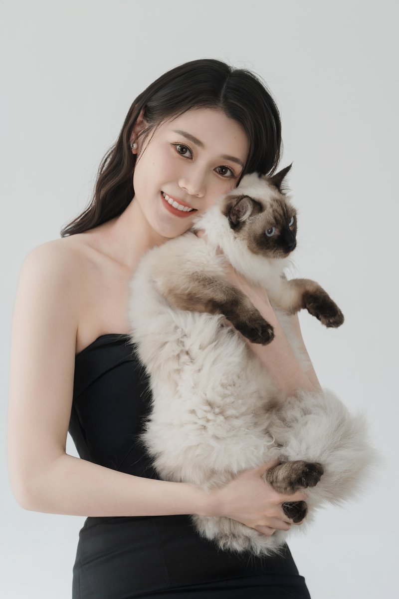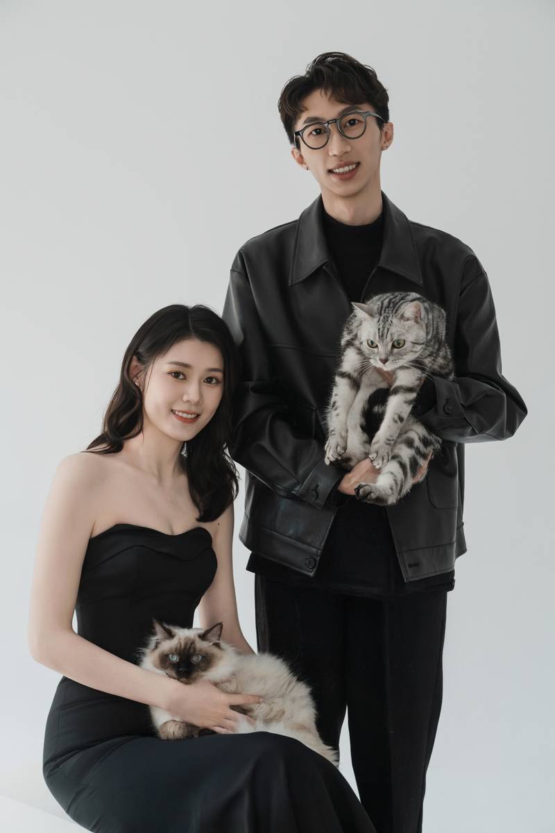 我們這次的拍攝地點有三個:棚內、飛牛牧場和海邊。棚內的部分對我們來說特別有意義,因為我們還帶了家裡的兩位毛小孩 Eggie 和 Mookie 一起入鏡!大寶也非常有耐心,還幫忙逗貓,成功捕捉到超多可愛又溫馨的畫面,讓我們超感動。
