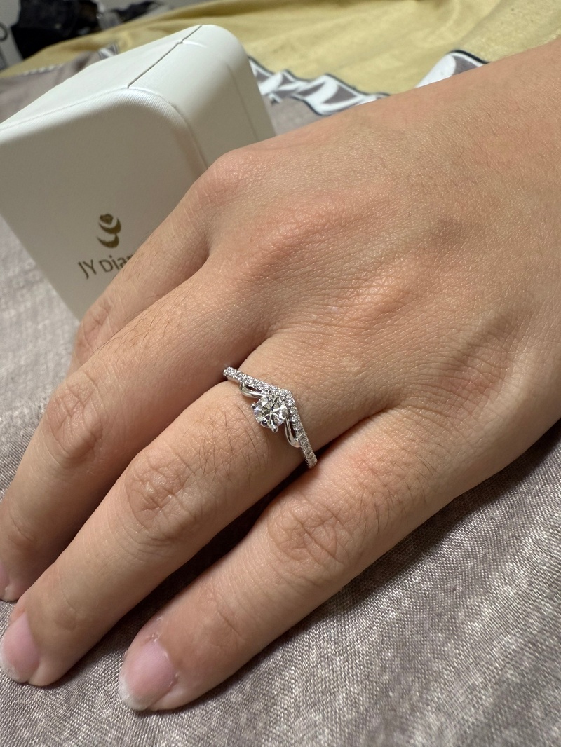 我與先生在籌備結婚時並沒有打要準備鑽戒,想說用黃金替代就好,偶然在台中的婚紗展中看見JYDiamond。羅仕珠寶,展場內服務人員非常詳細及細心的向我們介紹,從挑選戒台到鑽石等級、大小、純淨度等,十分專業,還有測量指圍及日常保養都耐心教導,我與先生就心動下訂了30分的鑽戒,JYDiamond。羅仕珠寶也很貼心,在得知我們的婚紗拍攝日期後,特別替我們趕工讓我們能帶著鑽戒去美美的拍婚紗照❤️,專業及服務態度給滿分💯,推推。