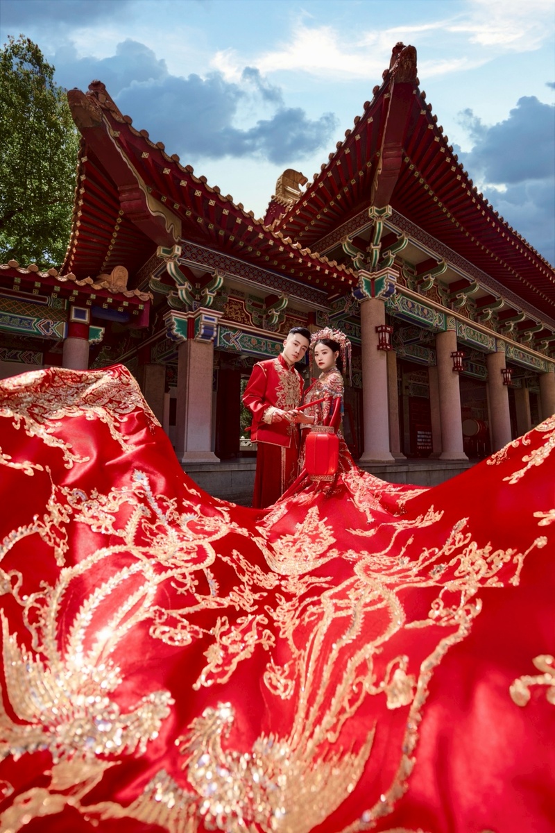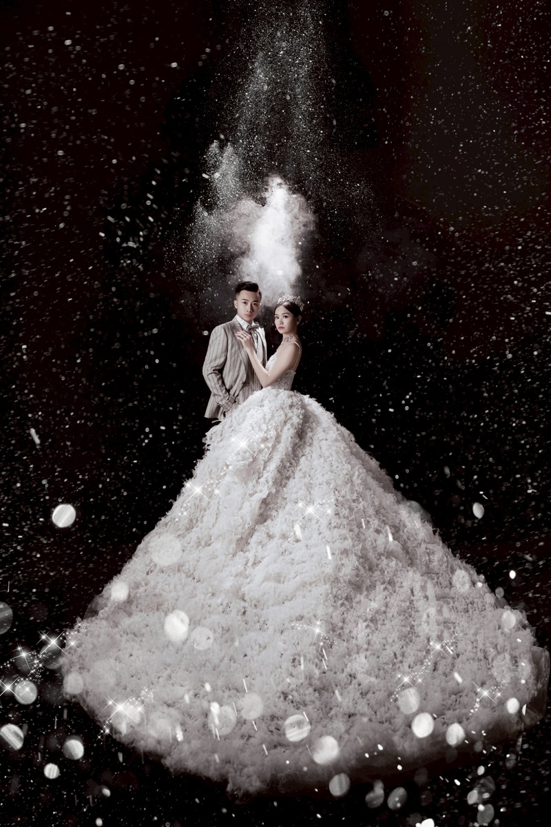 過程時不時整理服裝、擺動頭紗/裙襬、拿道具、打光、注意細節