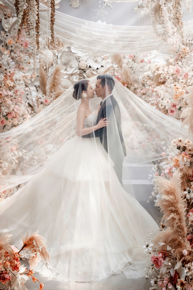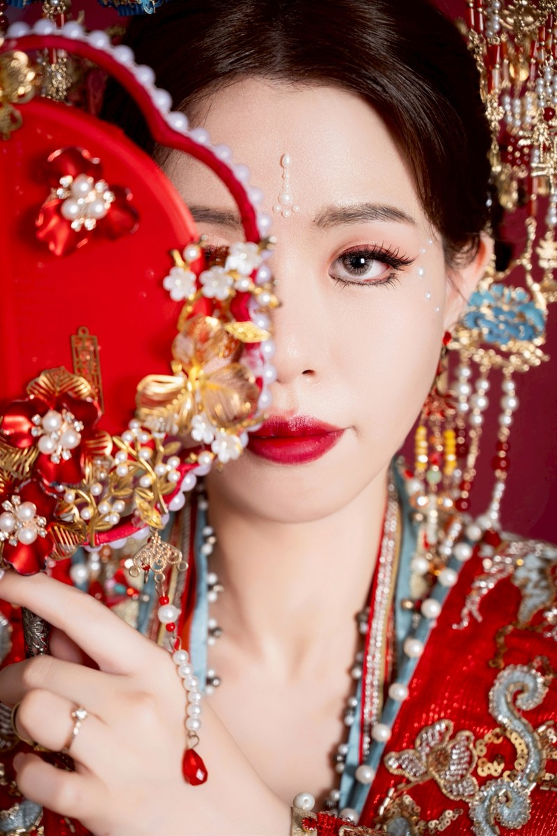 拍攝當日總共有3套禮服,造型師:吳祈蒂 老師幫我梳化了4種不同的髮型,讓一套禮服可以有兩種不同的造型呈現,妝容方面也幫我畫出了能更加襯托出五官優點的妝感,第一個造型完妝後就知道可以很放心交給老師發揮。