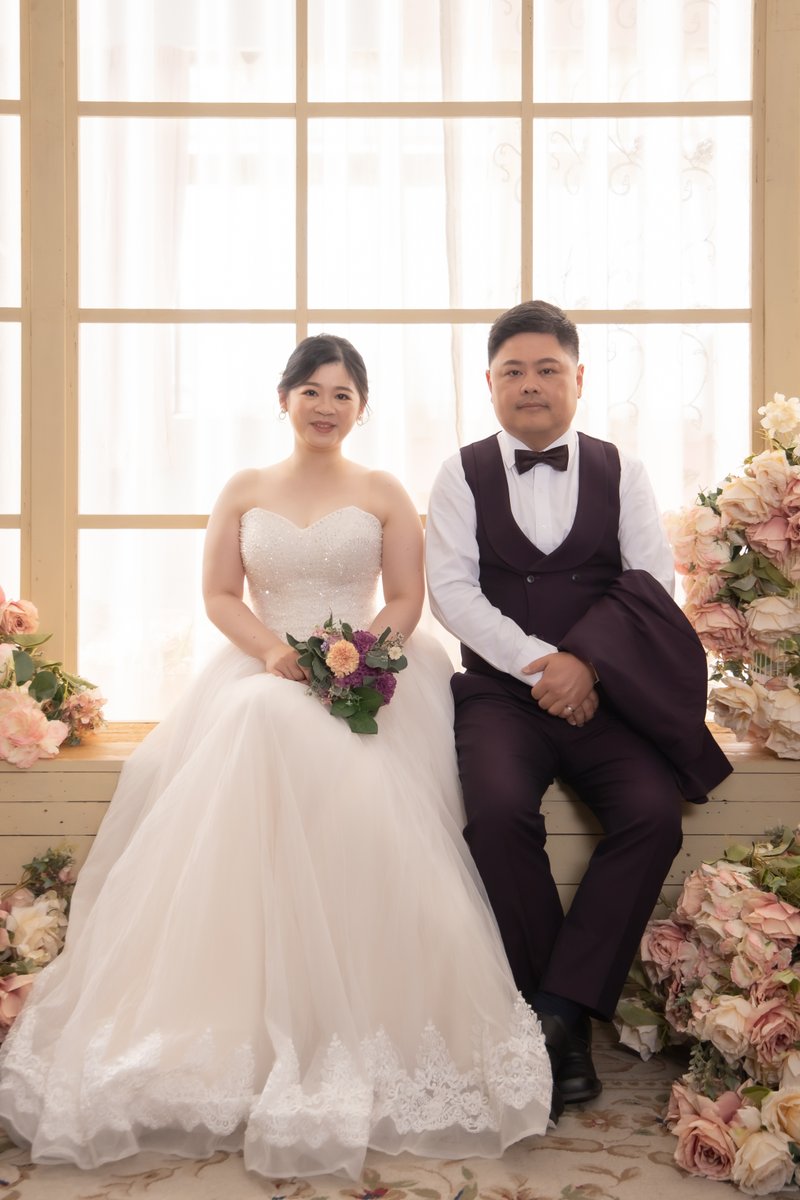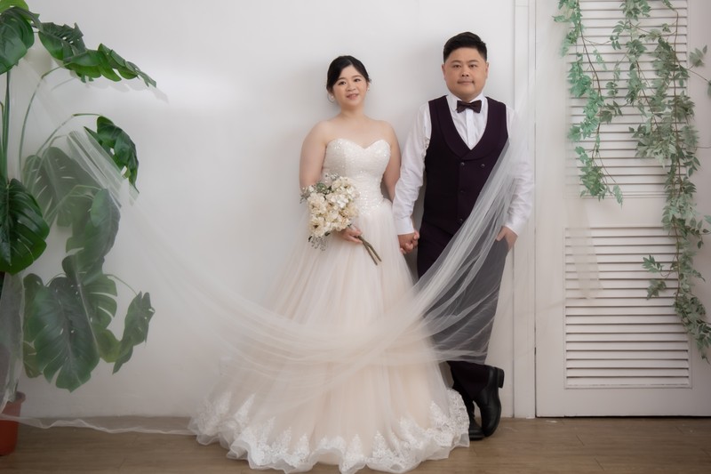 由於自己認識的攝影師沒時間,於是改讓伊頓攝影師服務,此外我們平常工作忙碌,無法一次又一次往婚紗公司跑,但是高雄伊頓自助婚紗工作室有提供線上溝通模式,讓我們可以忙碌的日程中跟攝影師及造型師溝通喜歡的髮型及妝容、拍攝婚紗照的氛圍及風格,這可以彌補有些人現場溝通未想到的部分,後續難再與攝影師及造型師表達需求;在拍婚紗照當天攝影師及造型師都會一再確認造型及拍攝細節,對於我們第一次棚拍小白,攝影師都會精心指導我們動作及表情,在現場情緒價值給滿滿,讓我們非常放鬆。